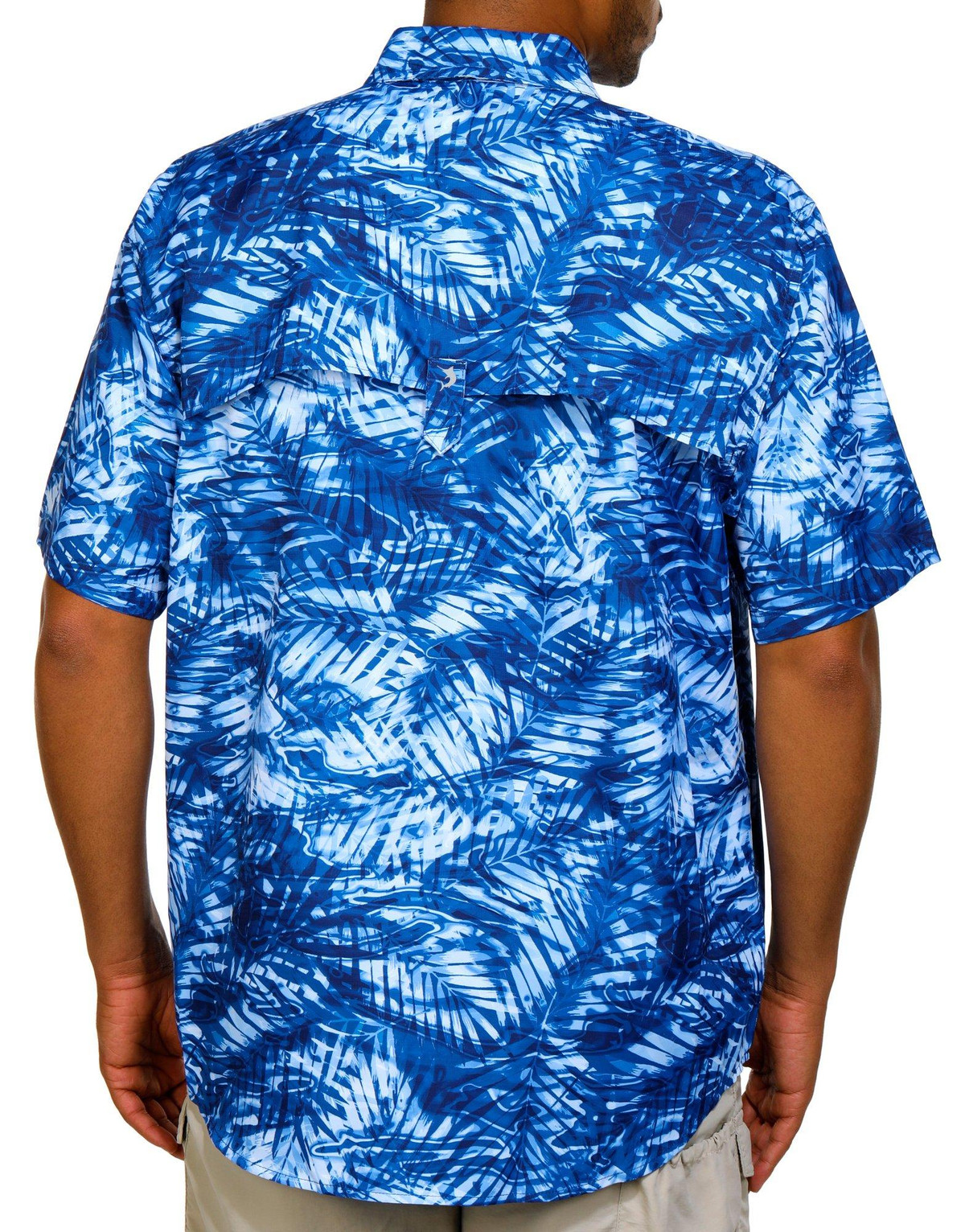 Show off your love for fishing on and off the boat in this stylish short-sleeve shirt from Reel Legends! This short sleeve shirt features tropical palm design on lightweight woven fabric, point collar, full button front closure, a fully vented back panel to keep you cool, two front chest pockets with slip pockets for extra storage, a rod holder, convenient sunglasses loop, UPF 50 sun protection, and moisture-wicking and quick-dry technology. Fabrication 100% polyester.