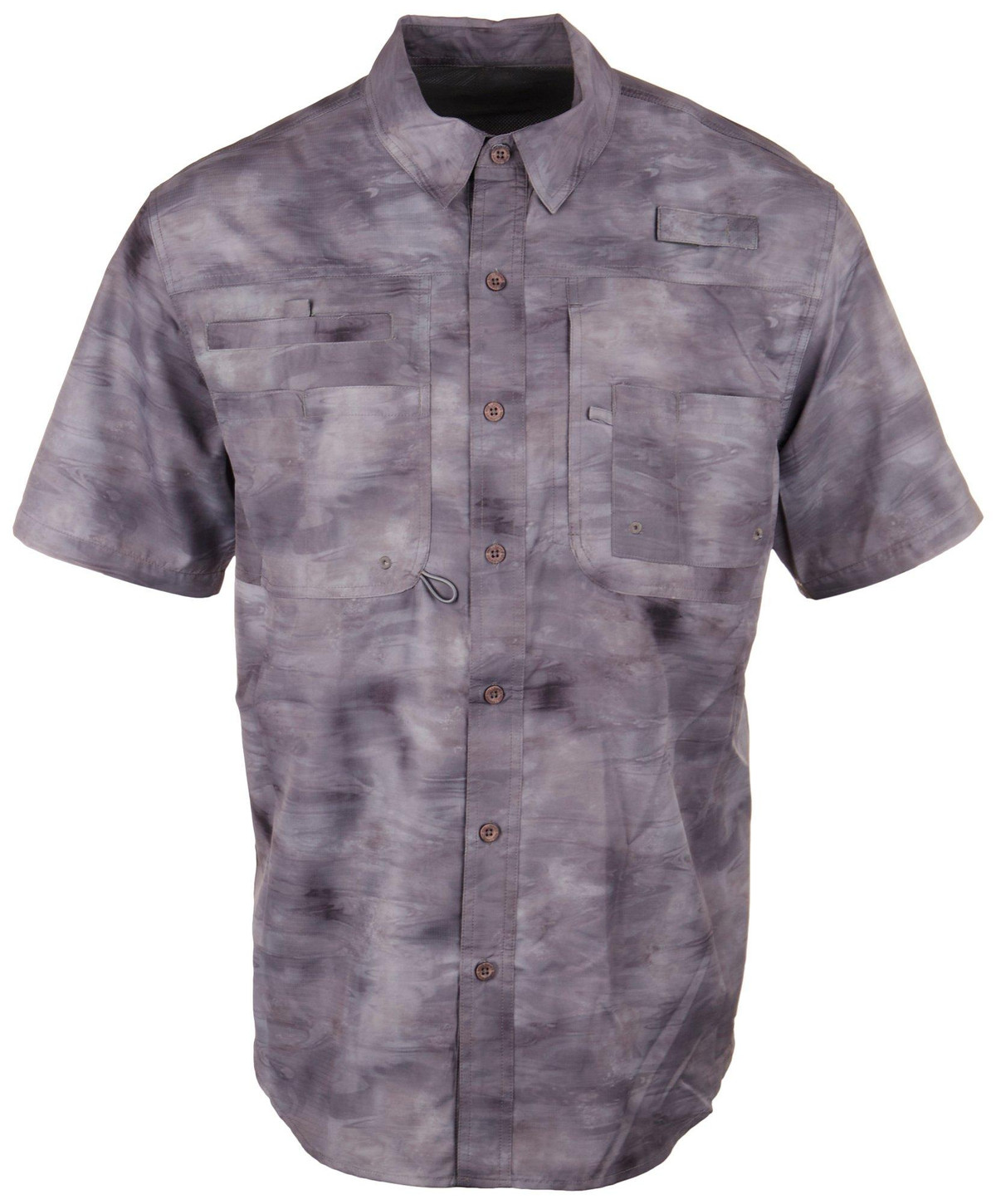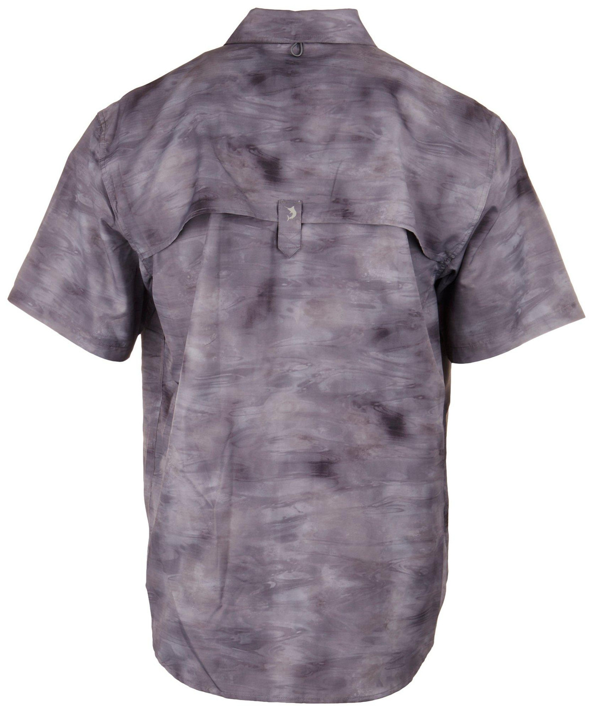 Show off your love for fishing on and off the boat in this stylish saltwater II short-sleeve shirt from Reel Legends! This saltwater II short sleeve shirt features print design on lightweight woven fabric, point collar, full button front closure, a fully vented back panel to keep you cool, two front chest pockets with slip pockets for extra storage, a rod holder, convenient sunglasses loop, UPF 50 sun protection, and moisture-wicking and quick-dry technology. Fabrication 100% polyester.