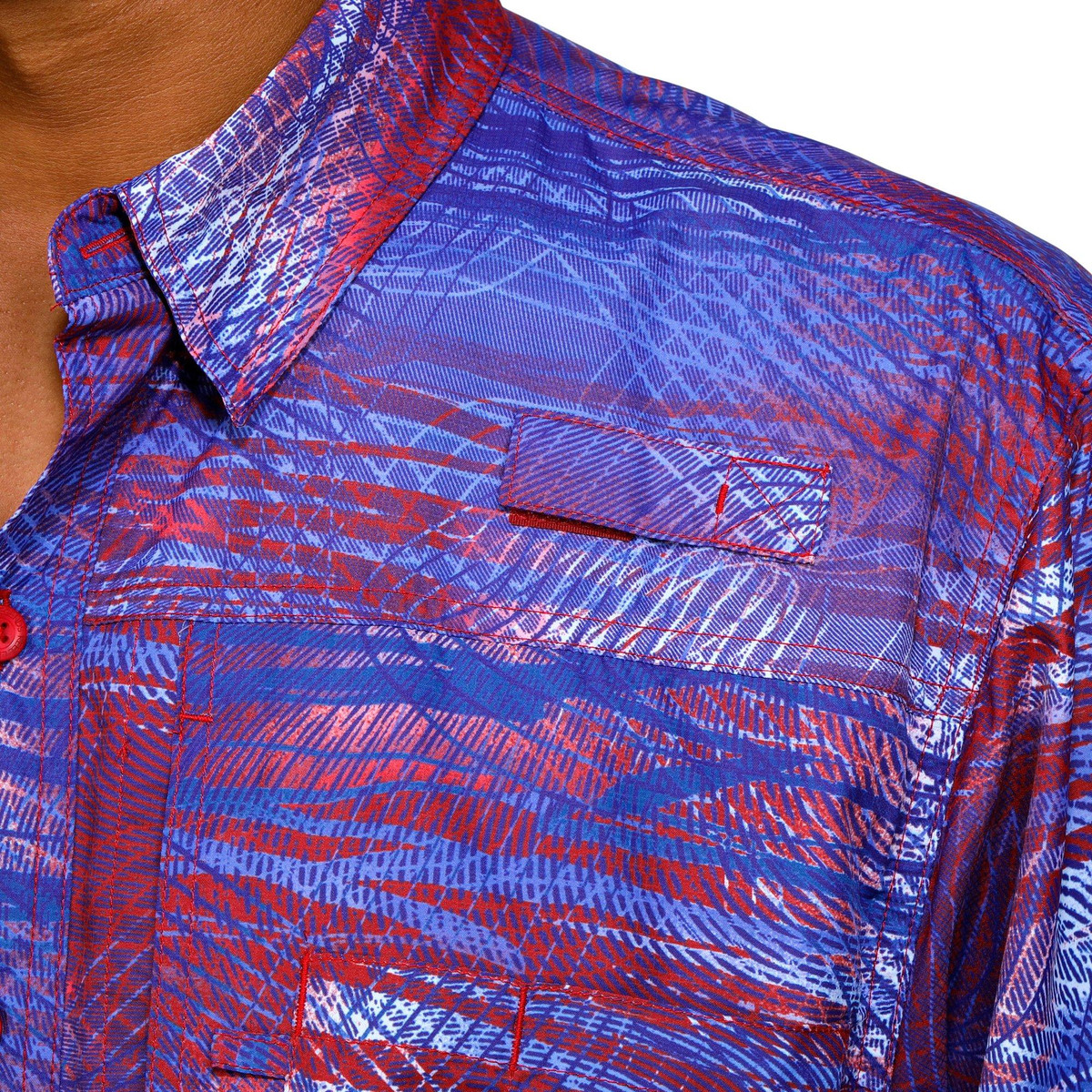 Show off your love for fishing on and off the boat in this stylish saltwater II short-sleeve shirt from Reel Legends! This saltwater II short sleeve shirt features print design on lightweight woven fabric, point collar, full button front closure, a fully vented back panel to keep you cool, two front chest pockets with slip pockets for extra storage, a rod holder, convenient sunglasses loop, UPF 50 sun protection, and moisture-wicking and quick-dry technology. Fabrication 100% polyester.