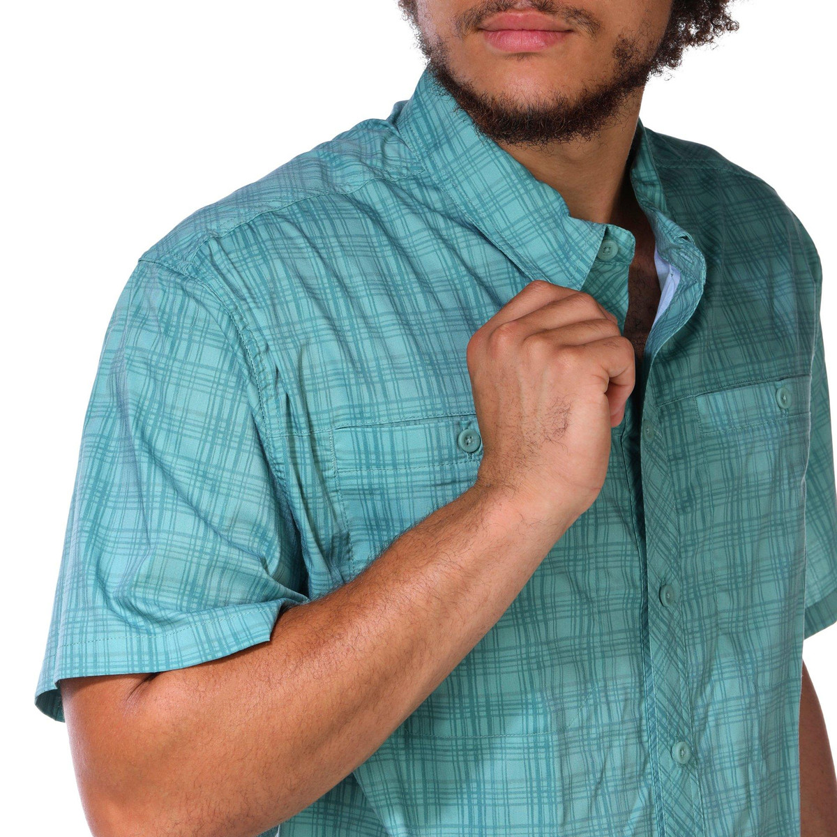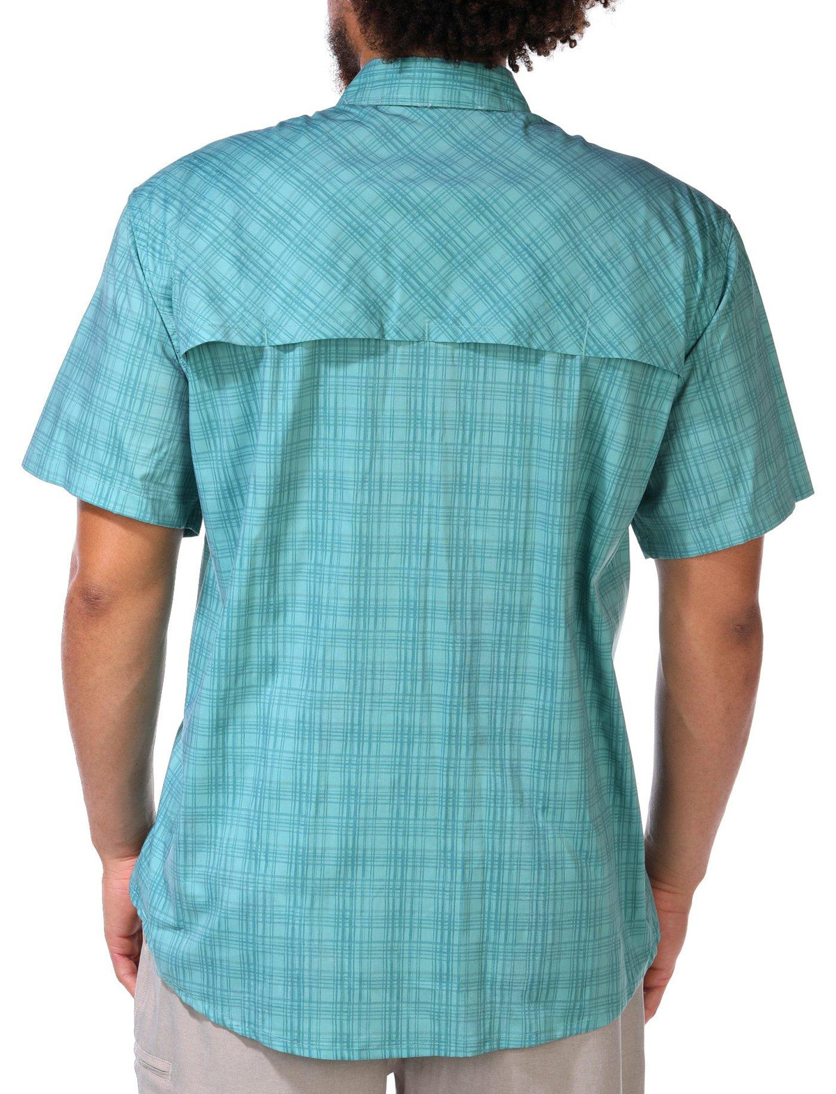 Conquer the outdoors in style with the Terrain Short Sleeve Shirt. Featuring a bold print pattern, buttoned front, and vented panels for breathability, its built for adventure. Integrated sun protection shields you from the elements, while a hidden sunglasses cleaner keeps your view crystal clear. Fabrication 75% polyester, 22% cotton, 3% spandex.