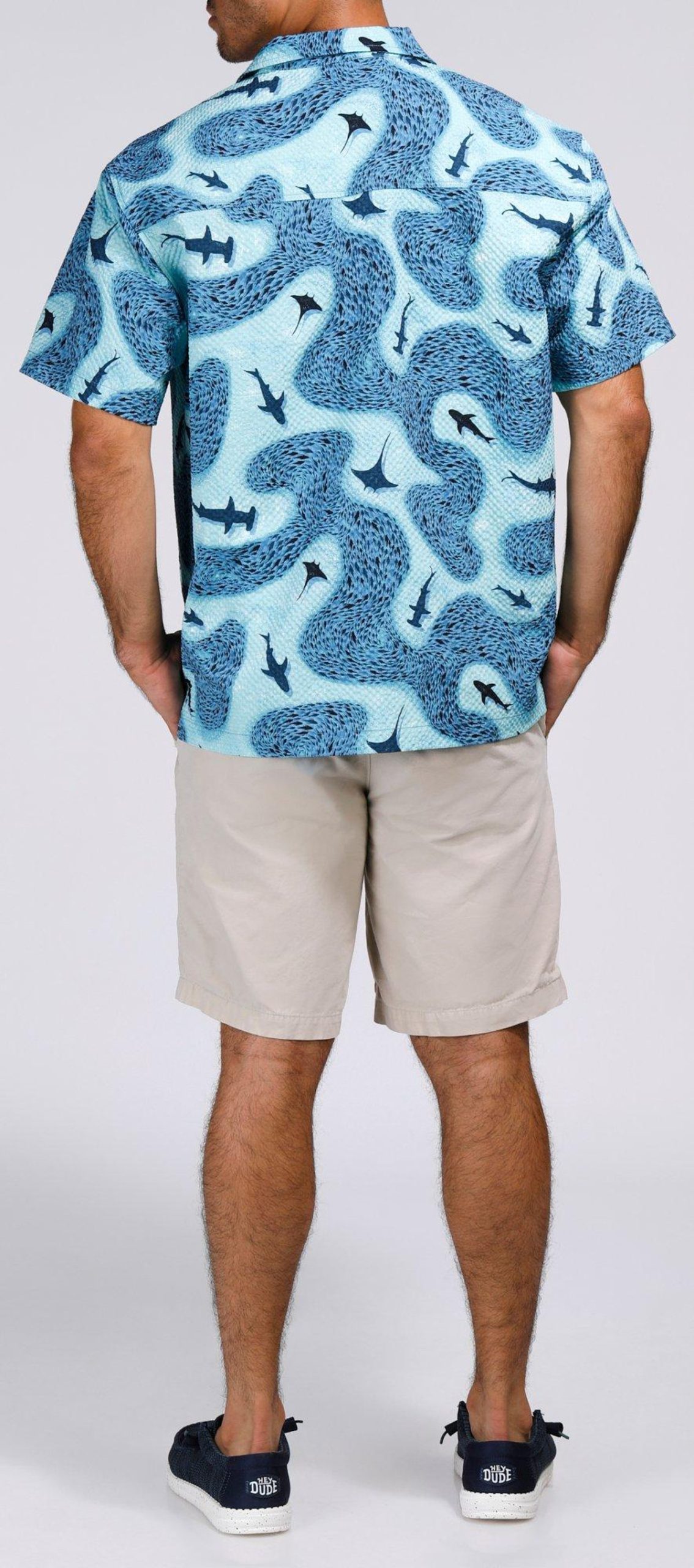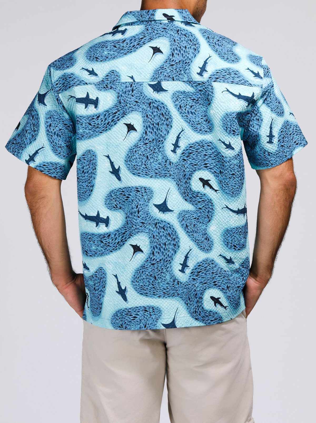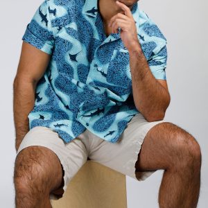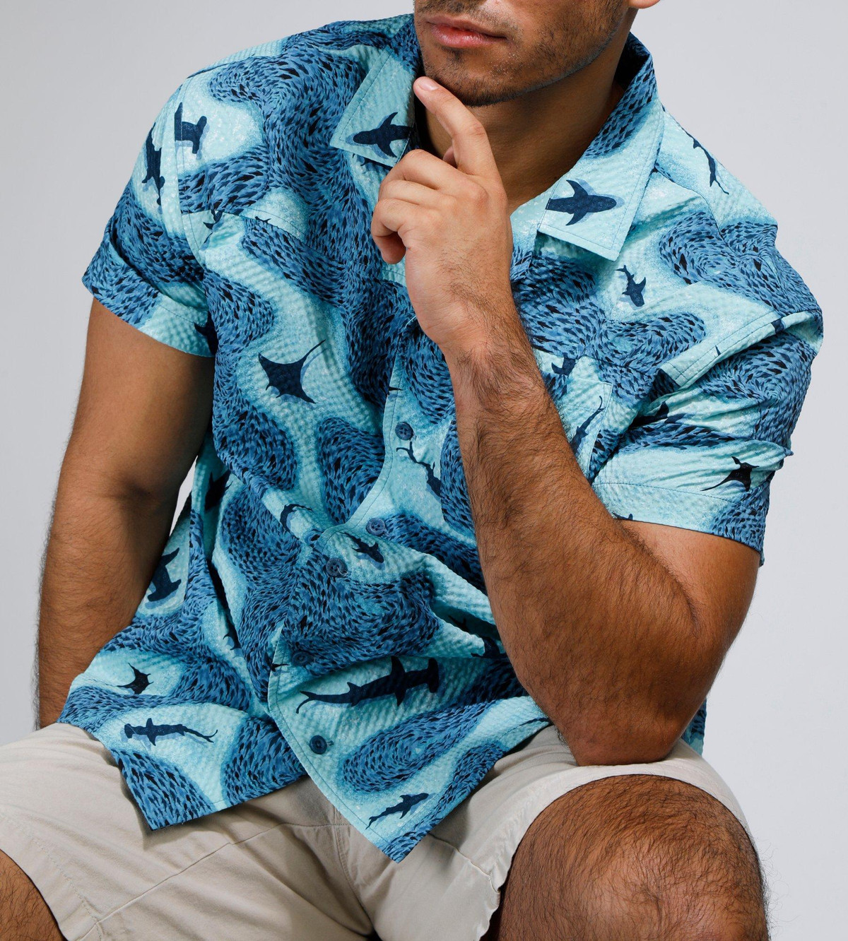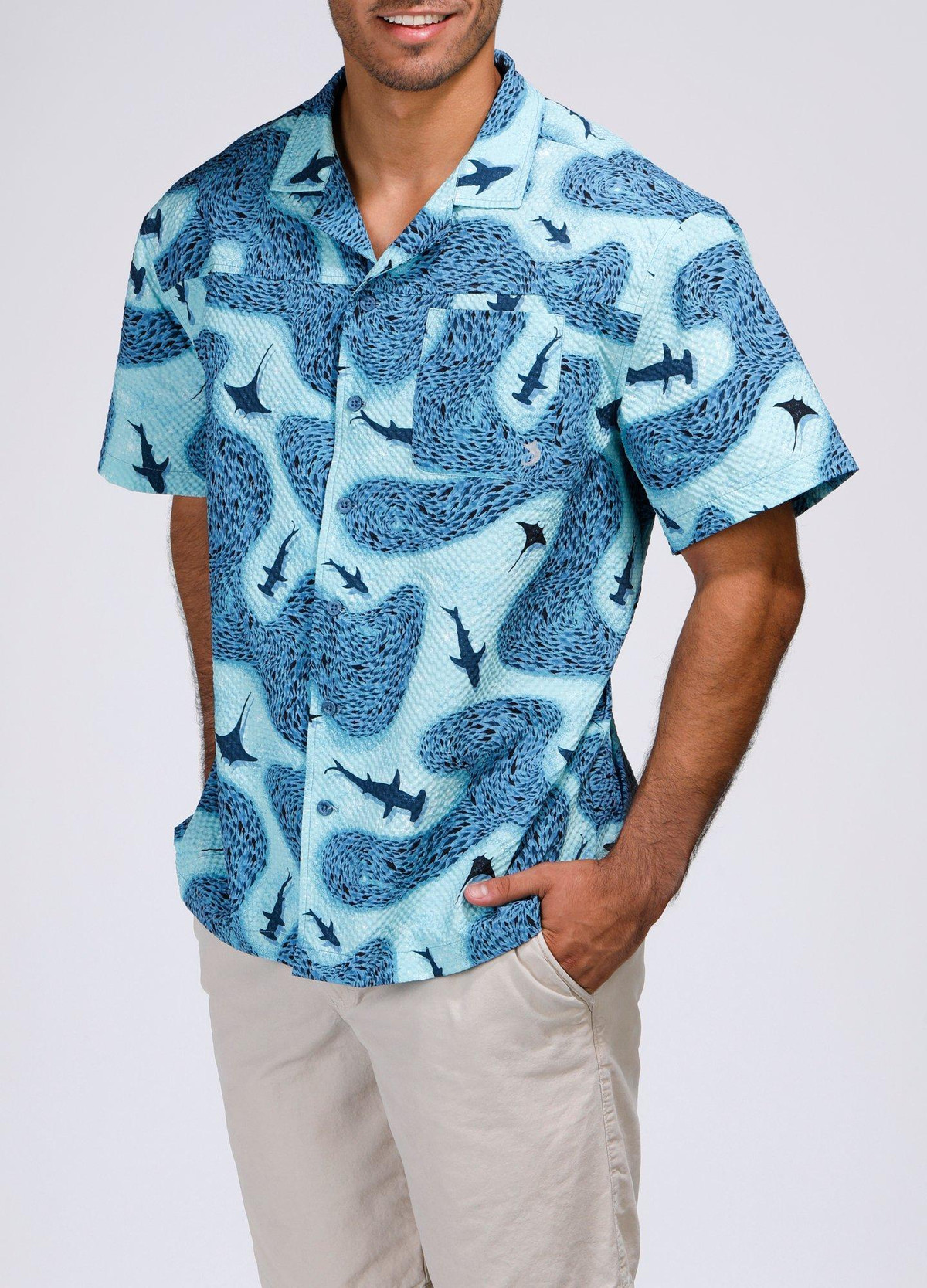 Make waves in style with our Men’s Seersucker Shark Printed Button-Up Shirt. Crafted from 100% polyester, this lightweight, textured shirt features a playful shark print and breathable seersucker fabric for all-day comfort. Perfect for beach days, barbecues, or casual summer outings.
