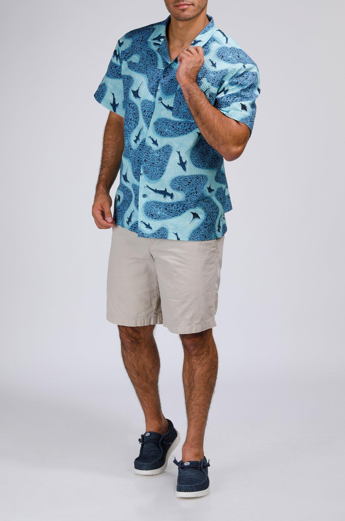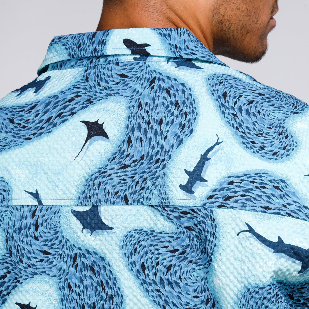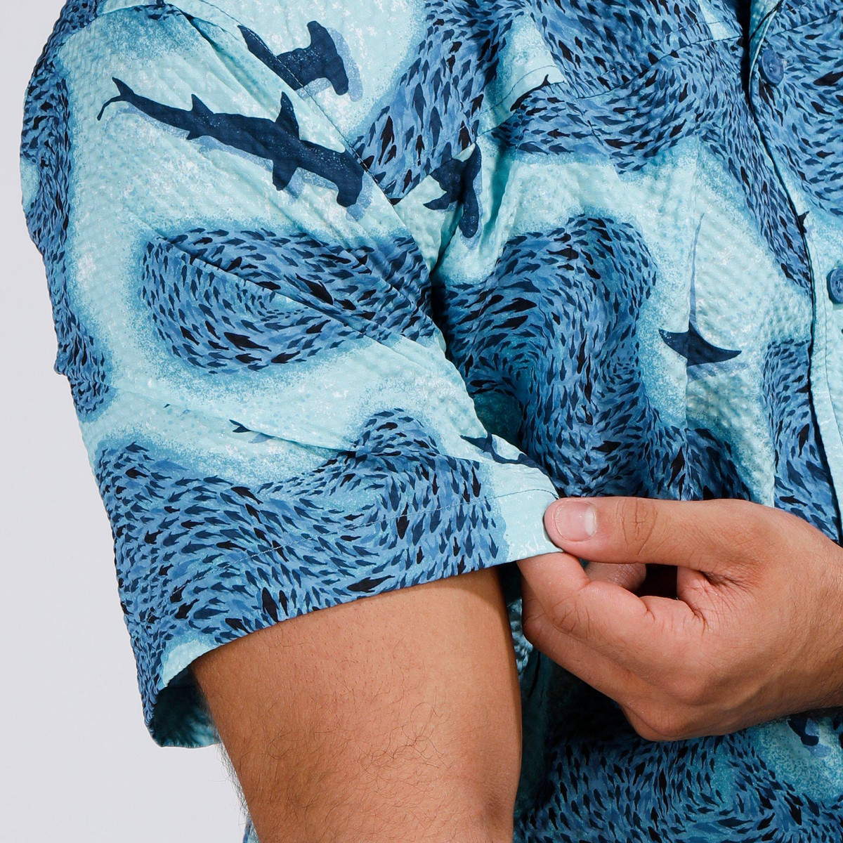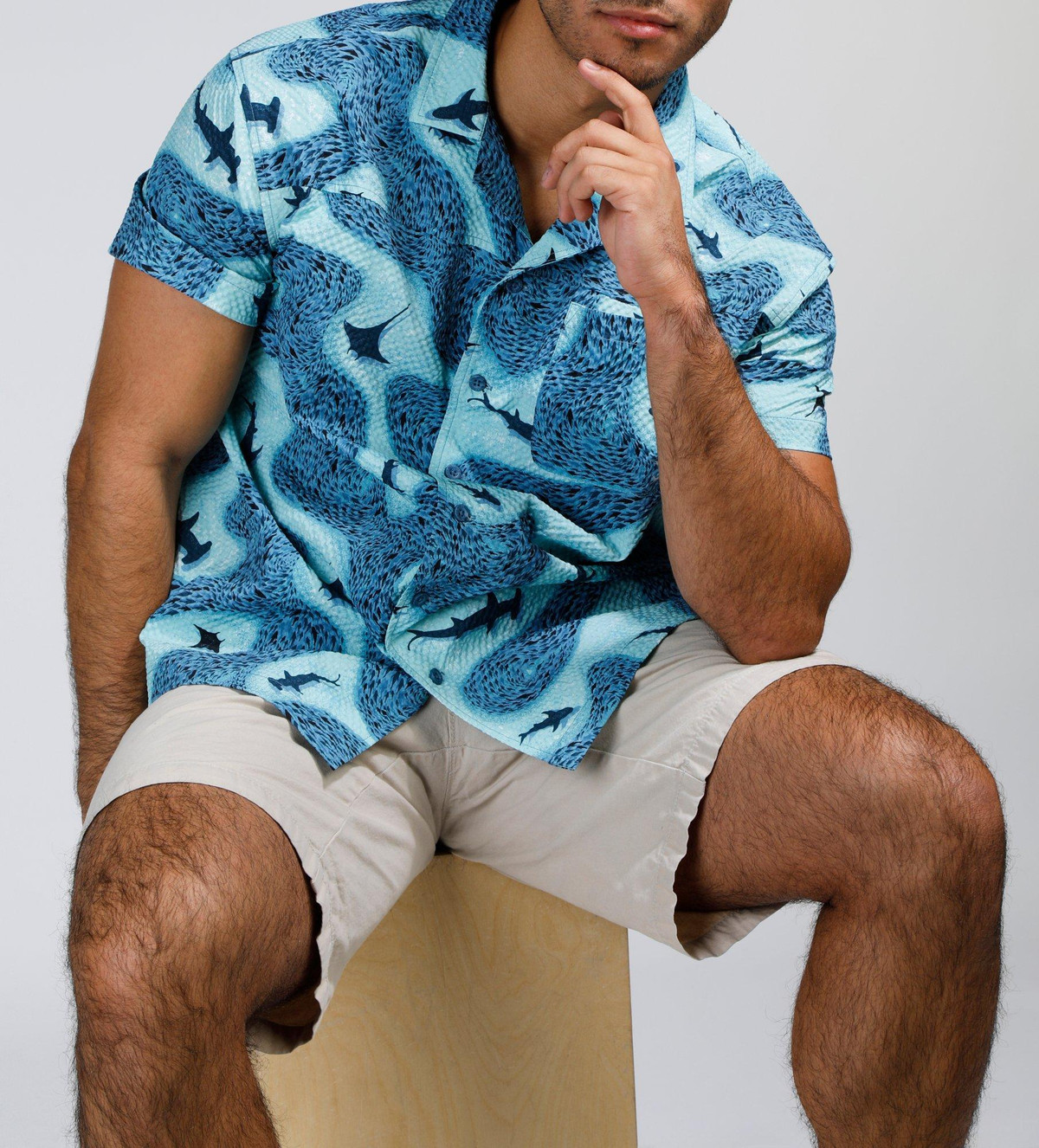 Make waves in style with our Men’s Seersucker Shark Printed Button-Up Shirt. Crafted from 100% polyester, this lightweight, textured shirt features a playful shark print and breathable seersucker fabric for all-day comfort. Perfect for beach days, barbecues, or casual summer outings.