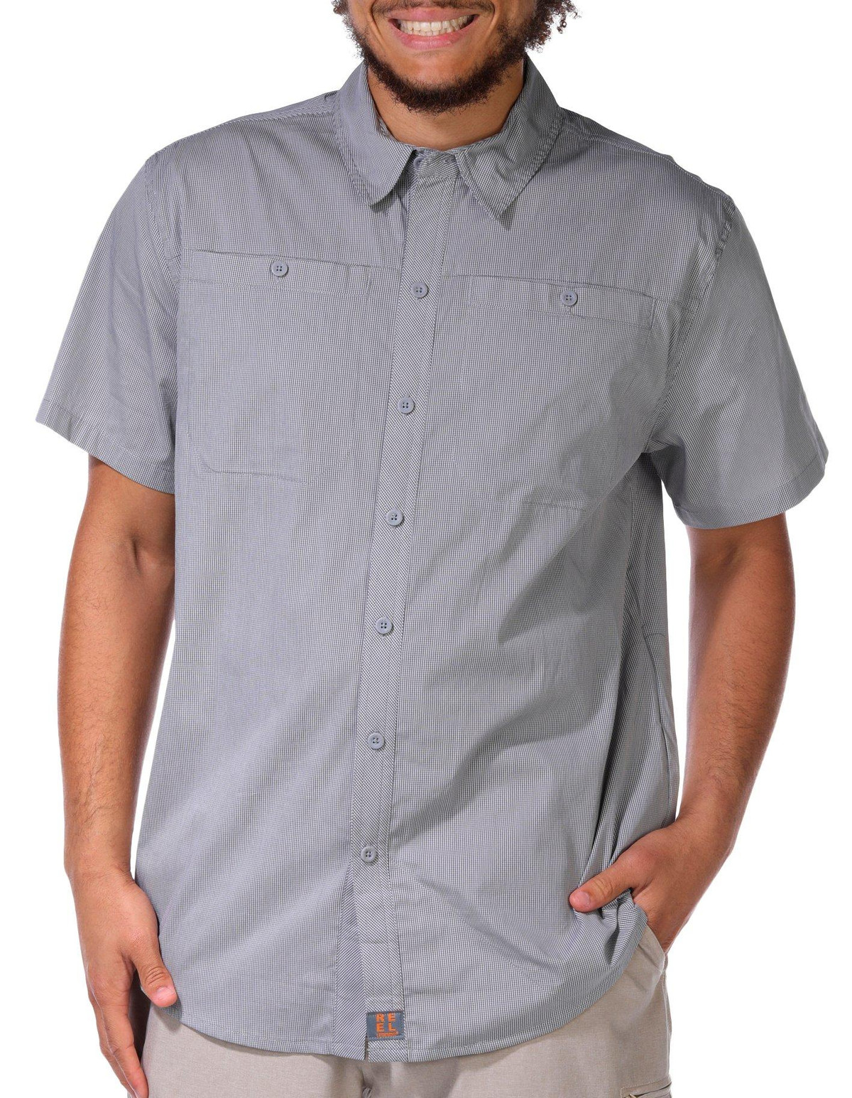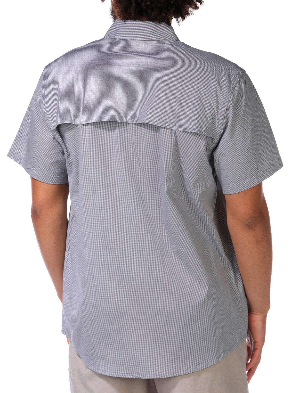 Adventure-ready and built for function, the Men’s Short Sleeve Land Terrain Shirt features a classic collar, button-down front, dual chest pockets, and a vented exterior for breathability. With short sleeves and a built-in sunglass cleaning fabric, it is perfect for sunny days outdoors. Fabrication 68% cotton, 28% nylon, 4% spandex