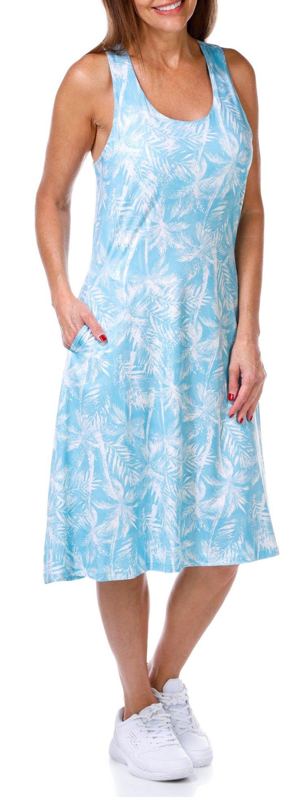 This Women’s Active Tank Dress combines performance and style with a bold print, built-in padded bra, and racerback design. Engineered with UPF 50 sun protection, moisture wicking, side seam pockets, quick dry, and cooling technology, it keeps you comfortable and confident from workouts to weekends. Fabrication 88% polyester, 12% spandex