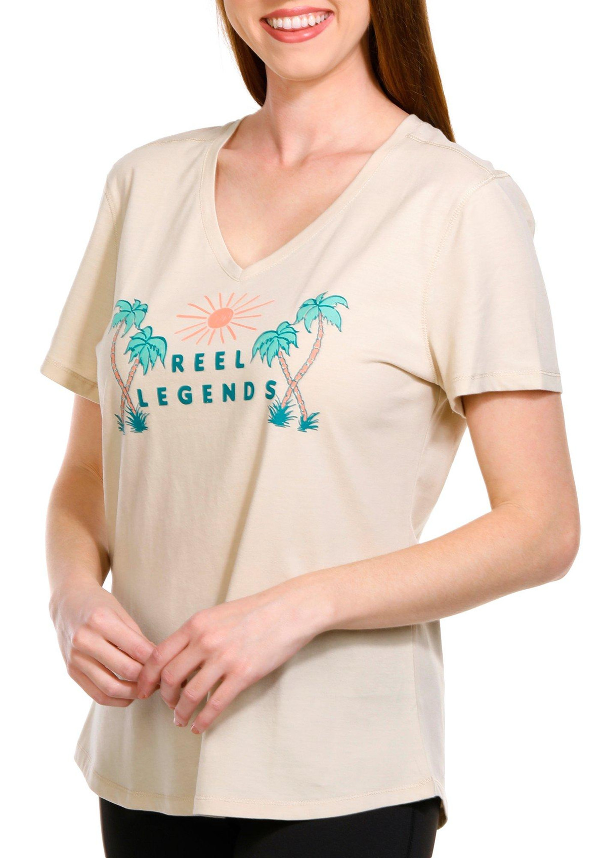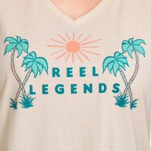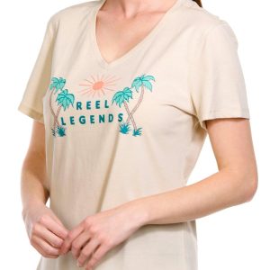 Introducing the Women’s Legendary Palms V-Neck T-Shirt, a perfect blend of cotton and polyester for a soft, comfortable fit. This stylish tee features a brand script graphic design, adding a touch of flair to your casual wardrobe. Ideal for everyday wear, it combines comfort and style effortlessly.