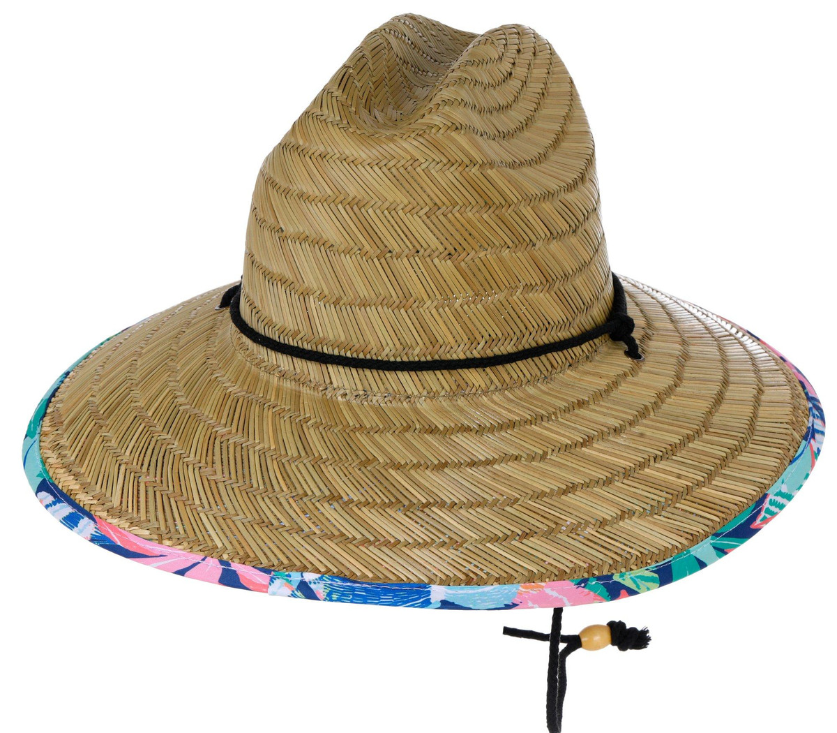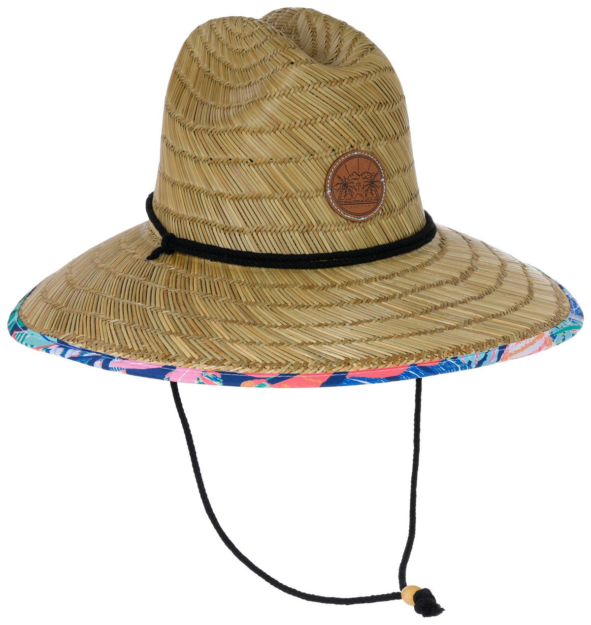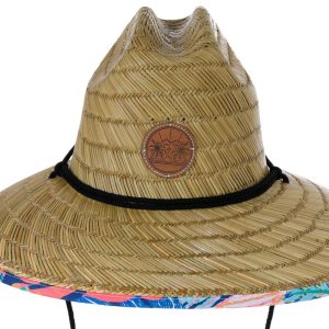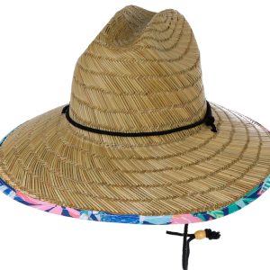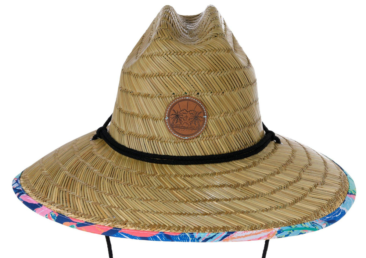 Stay cool under the sun with this Women’s Lifeguard Straw Hat. Featuring a tropical floral fabric underside and a front leather patch with Florida-themed detailing, it offers breathable coverage with a wide brim and adjustable neck string. Ideal for gardening, beach days, or outdoor adventures. Spot clean for best care.