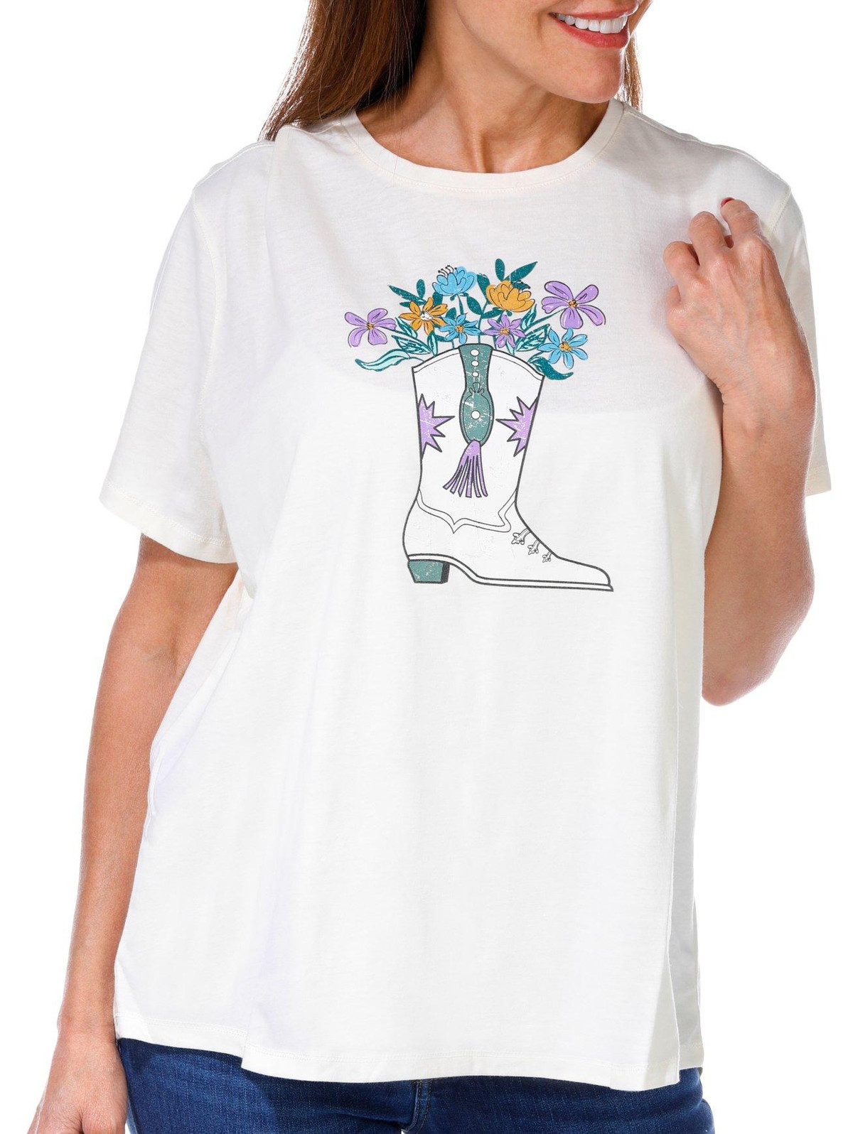 Saddle up your summer style with this Reel Legends short sleeve crew neck tee, featuring a charming cowboy boot graphic adorned with blooming flowers. Crafted from a soft, breathable cotton blend, it offers a relaxed fit thats perfect for laid-back days and outdoor adventures. The playful Western-inspired print adds a touch of personality, making it a standout piece whether you’re hitting the trails or just kicking back in the sunshine. Yeehaw meets easygoing comfort.