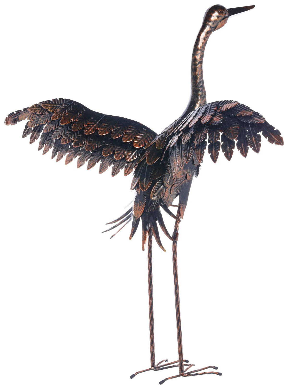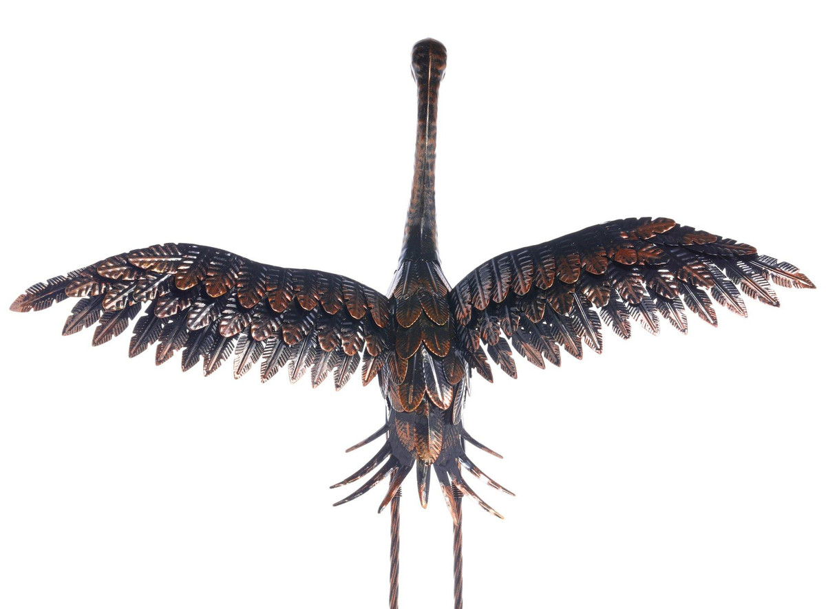 Elevate your outdoor décor with this handcrafted copper crane, standing 34 inches high with intricate feather details and a rich metallic finish. Designed for durability, it withstands the elements while adding a graceful touch to gardens, patios, or indoor spaces. Whether placed near a pond or among lush greenery, this elegant statue brings timeless charm and sophistication to any setting.