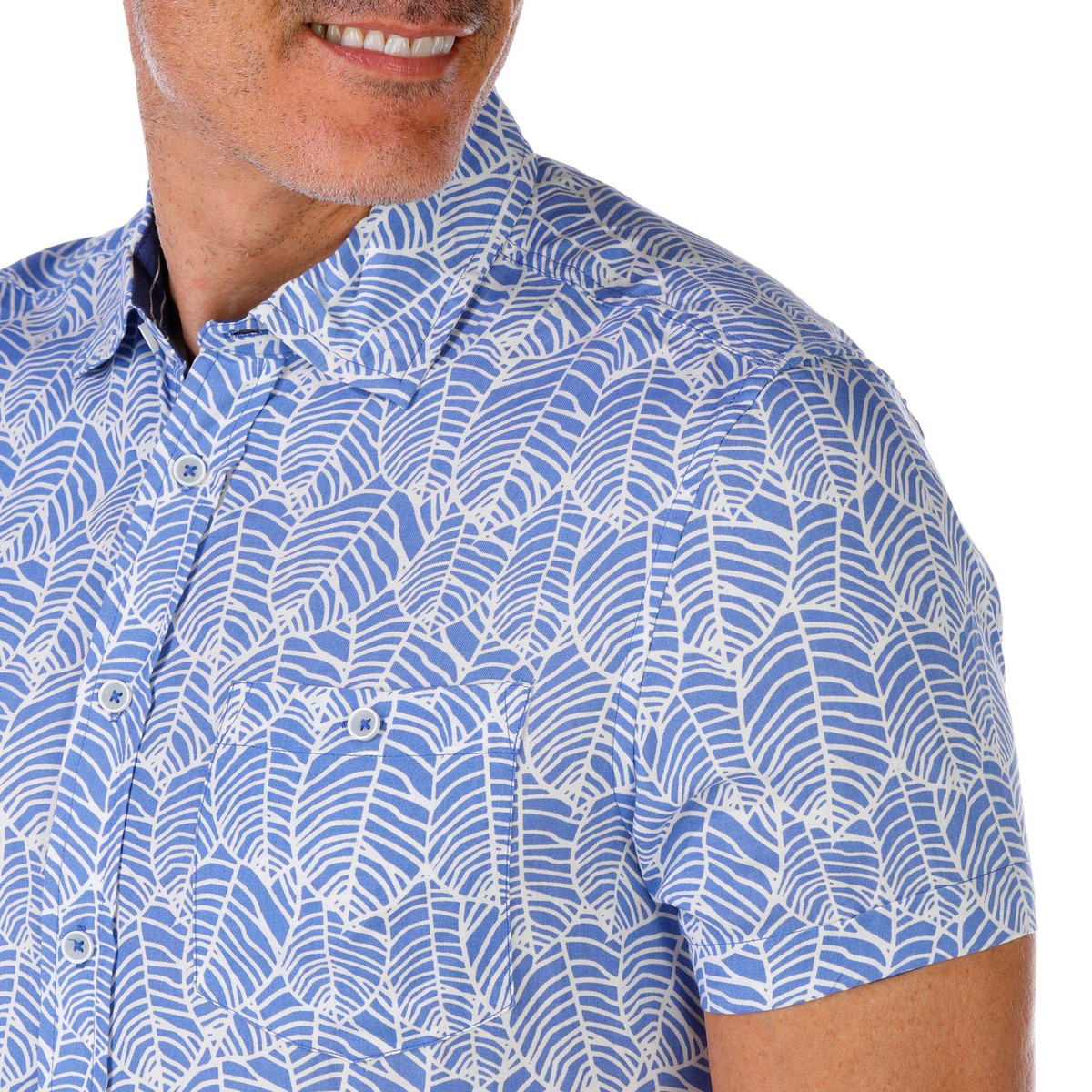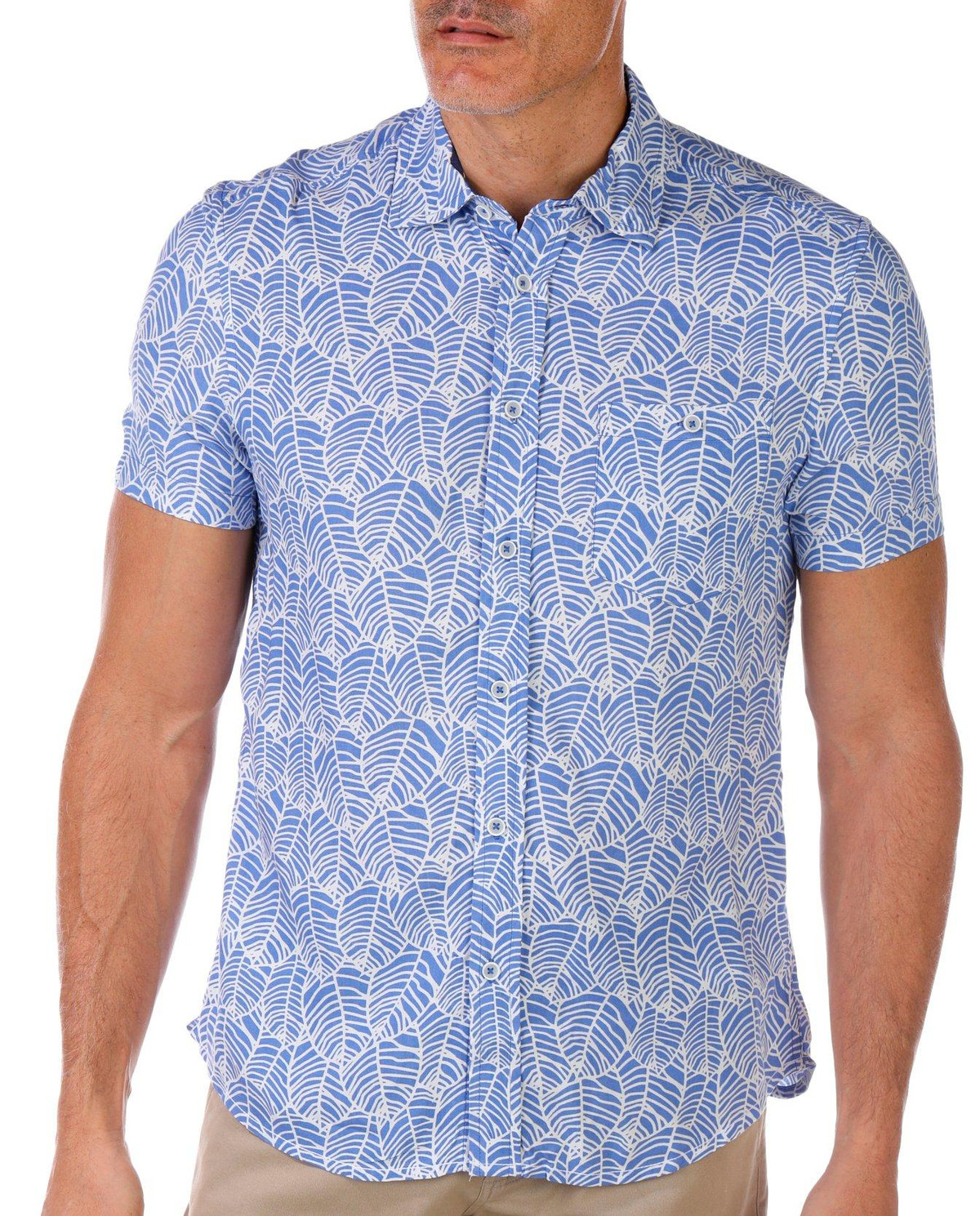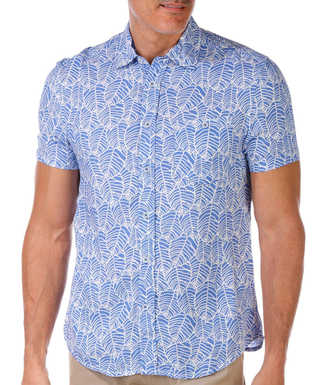 Stay cool and stylish in this Men’s Leaf Print Button Down Shirt. Made from soft fabric, it features a classic collar, short sleeves, chest pocket, and a button-down front closure. Perfect for casual outings or tropical escapes.