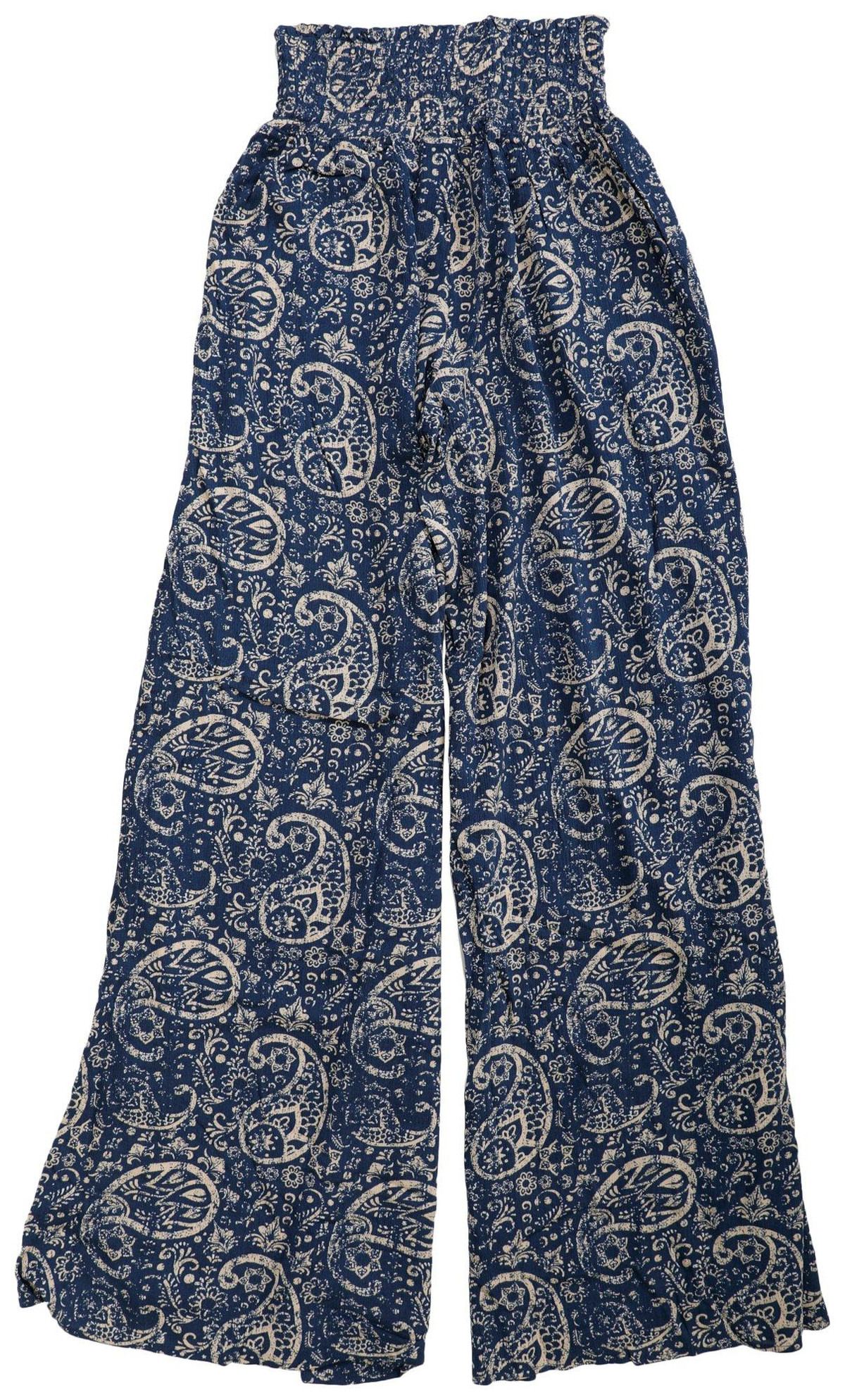 Breeze through your day in these Juniors Paisley Wide Leg Pants. Featuring a smocked waistband for all-day comfort, a flowy wide-leg silhouette, and chic side slits, they are perfect for effortless style with a touch of flair. Fabrication 100% rayon