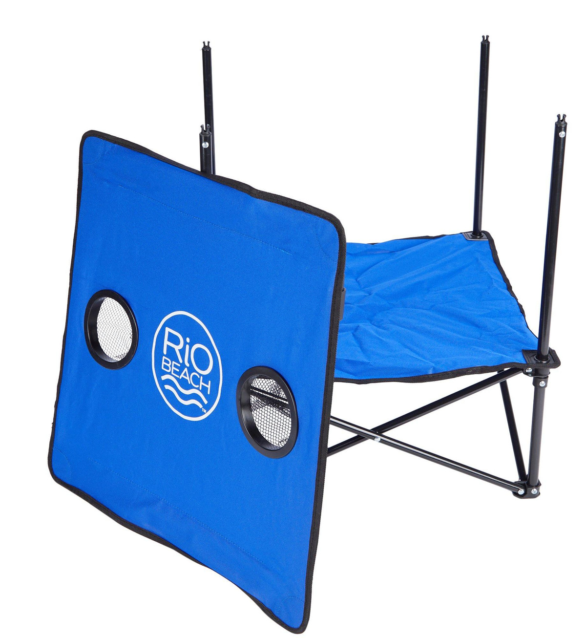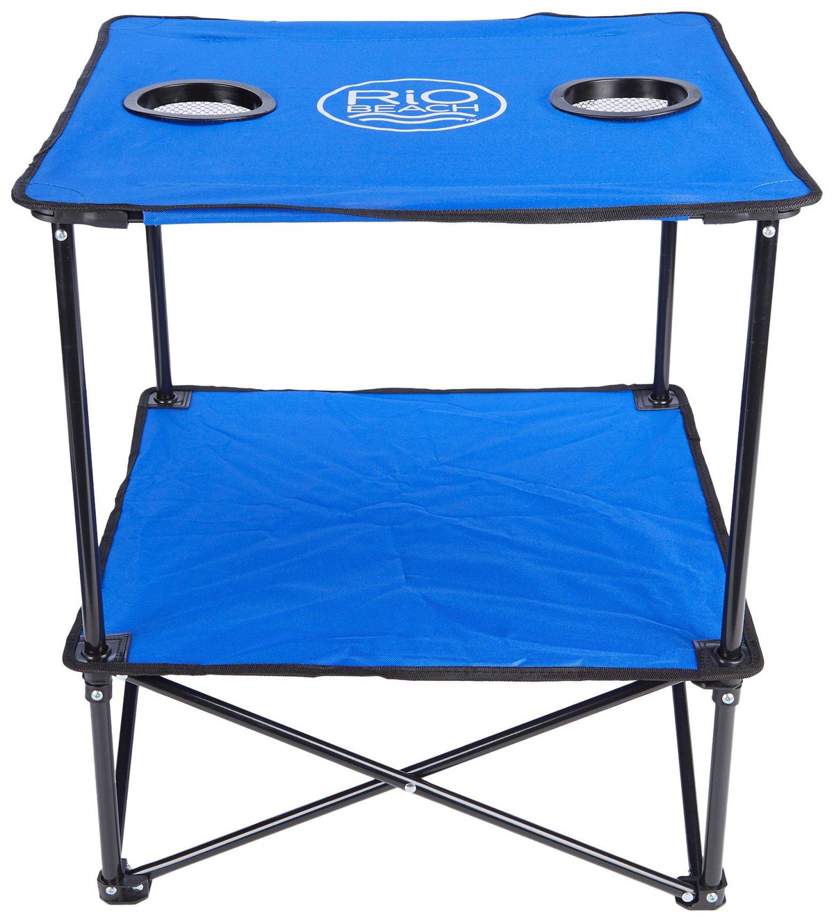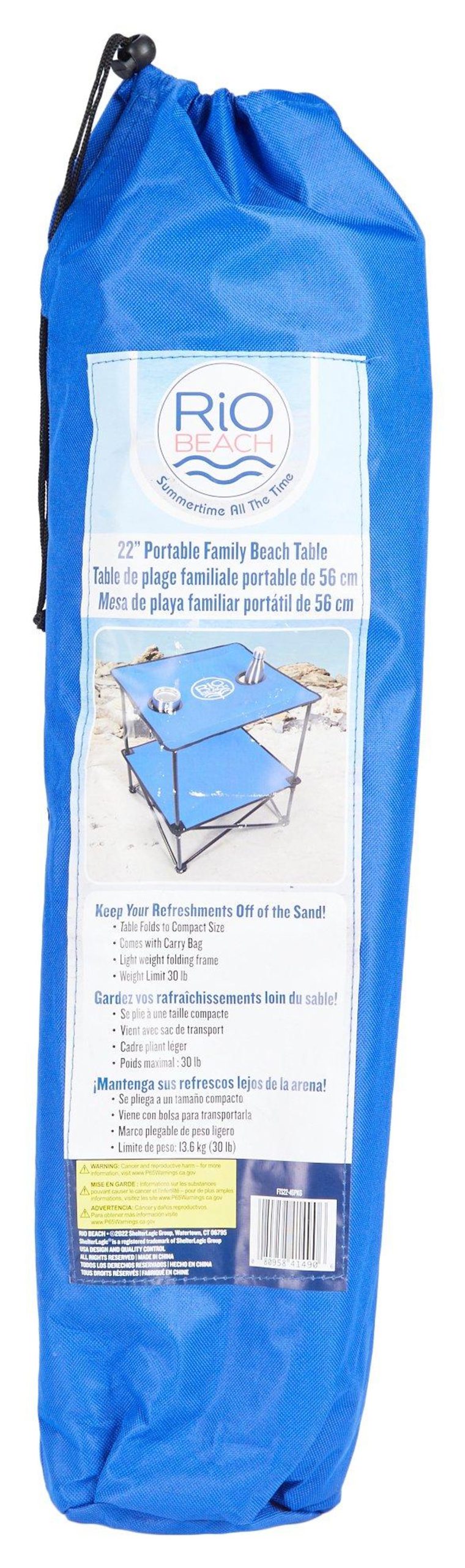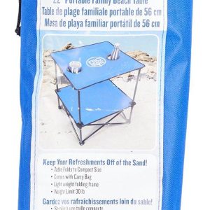 This 22 in Portable Beach Table is just what you need for beach days, camping, picnics, deck parties and other outdoor activities. It features two cupholders and two levels for more table space. It measures 22 inches across.