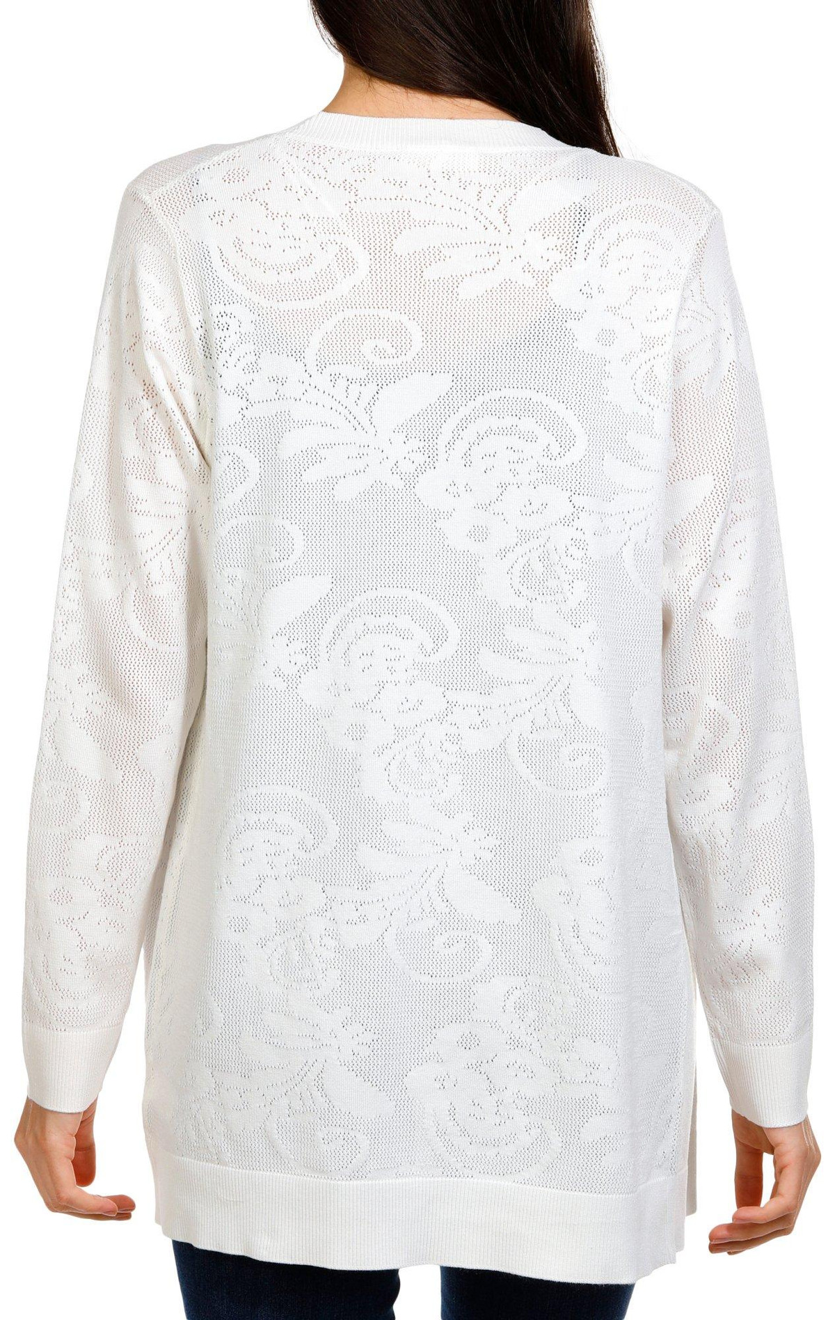 Introducing the Long Sleeve Open Cardigan, a perfect blend of elegance and comfort. This cardigan features a beautiful novelty stitch embroidered design that adds a unique and artistic touch. The open front design allows for easy layering, making it a versatile addition to your wardrobe. Fabrication is 70% viscose, 30% polyester.