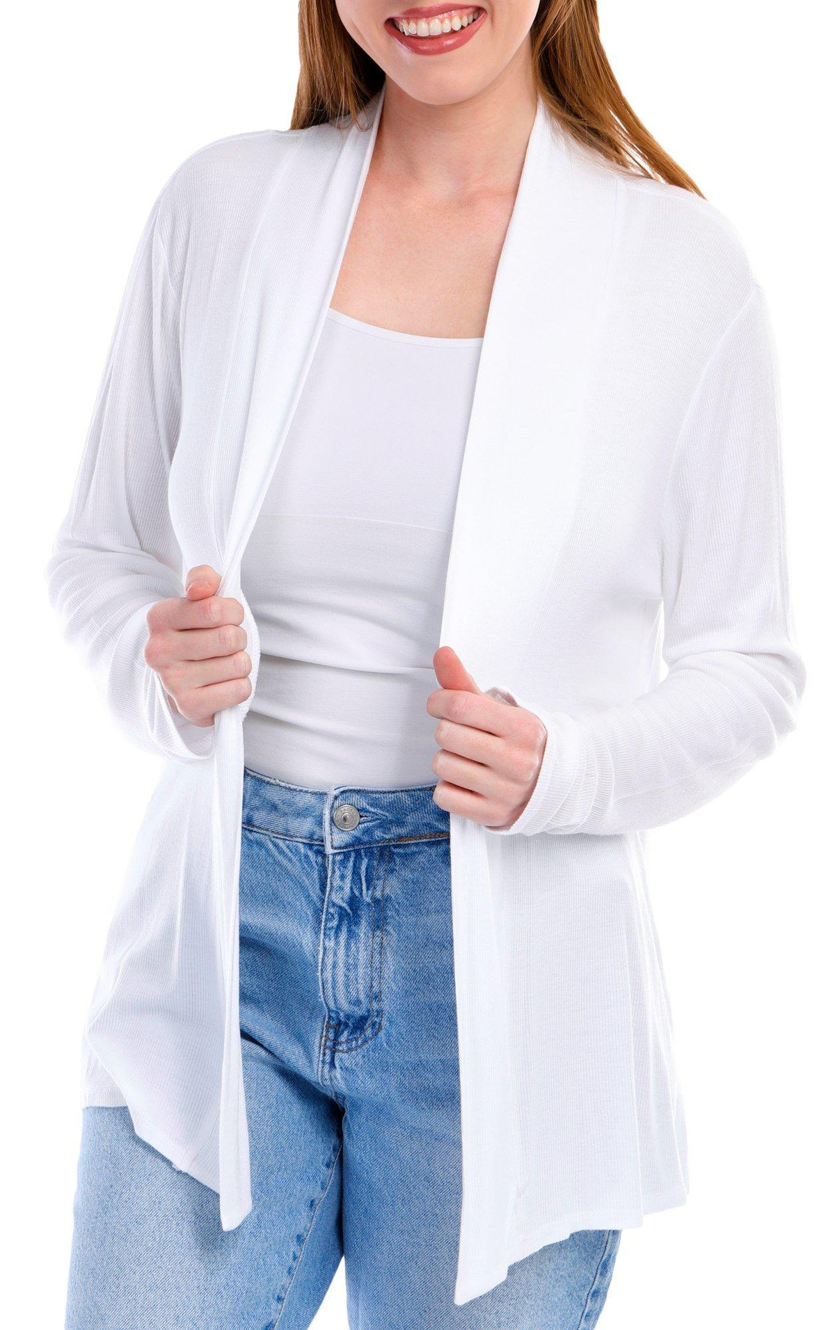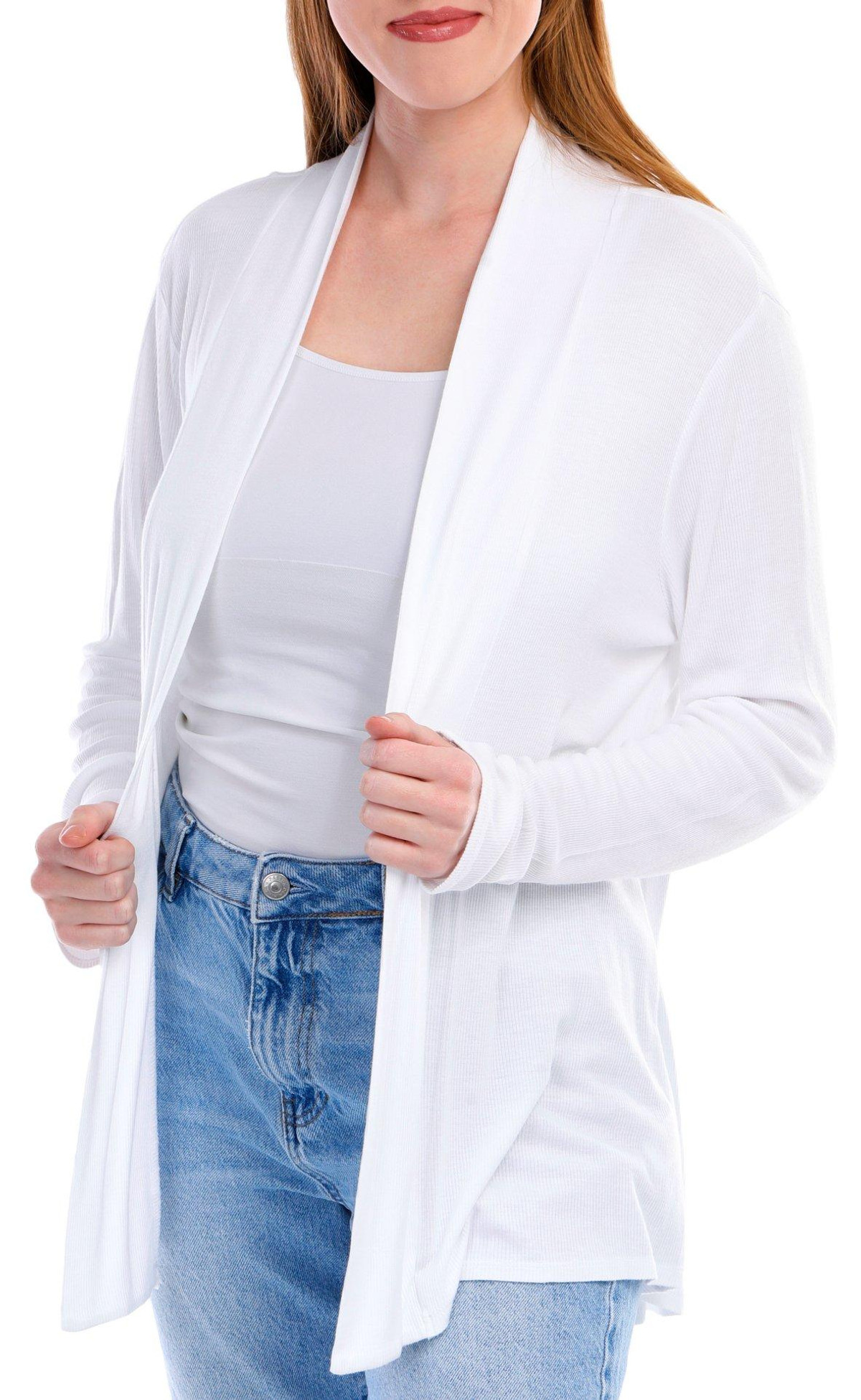 Stay cozy and chic with this women’s ribbed cardigan. Made from a blend of spandex and viscose, it features a stylish solid ribbed exterior, long sleeves, and an open front design. Perfect for layering over your favorite outfits, this versatile cardigan adds a touch of elegance to any look. Whether you’re dressing up for a night out or keeping it casual, this cardigan is a must-have addition to your wardrobe.