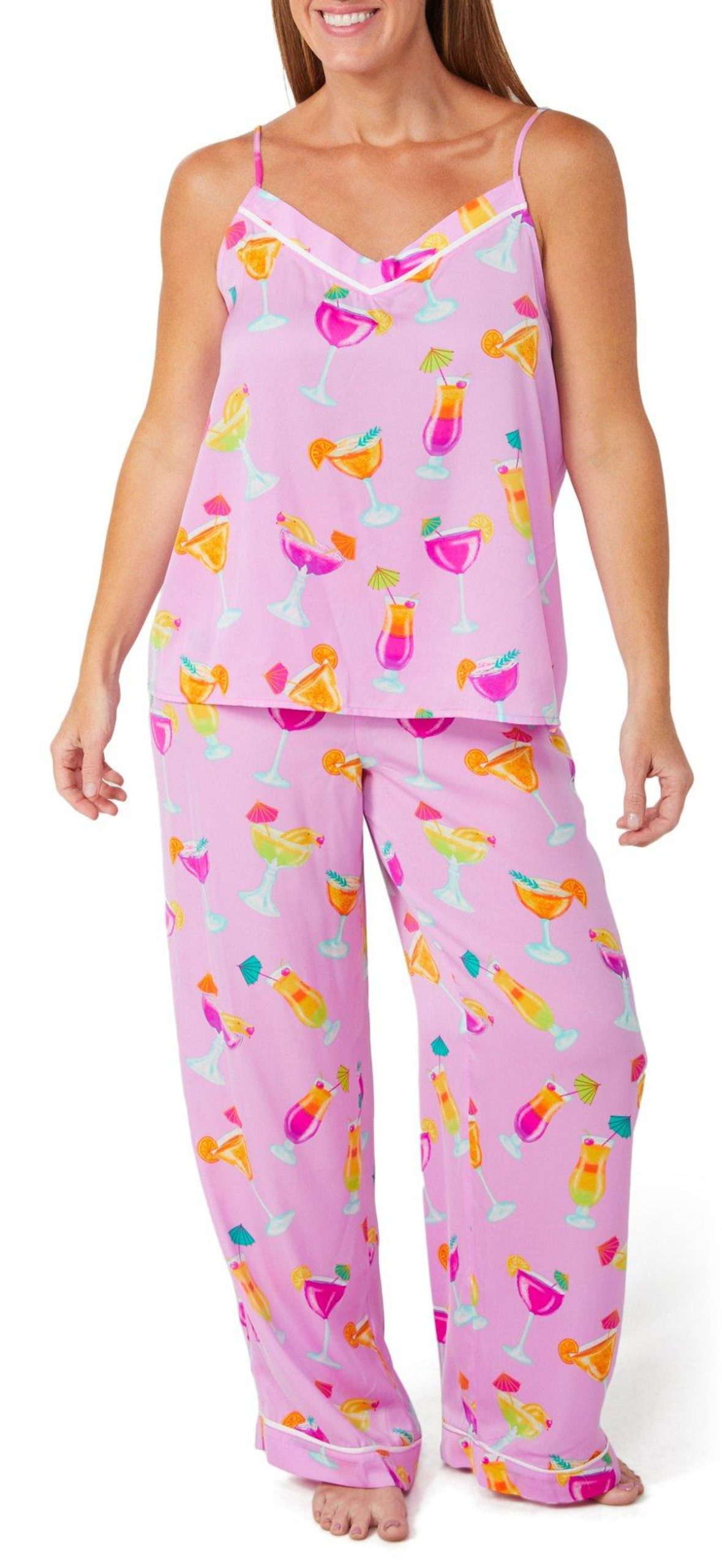 Stay cool and cozy in this 2 piece pajama set, featuring a fun print pattern that adds a playful touch. The sleeveless top offers breezy comfort, while the matching long bottoms provide a relaxed fit for easy lounging. Perfect for warm nights or laid back mornings, this set blends style and softness for effortless downtime.