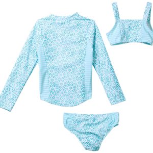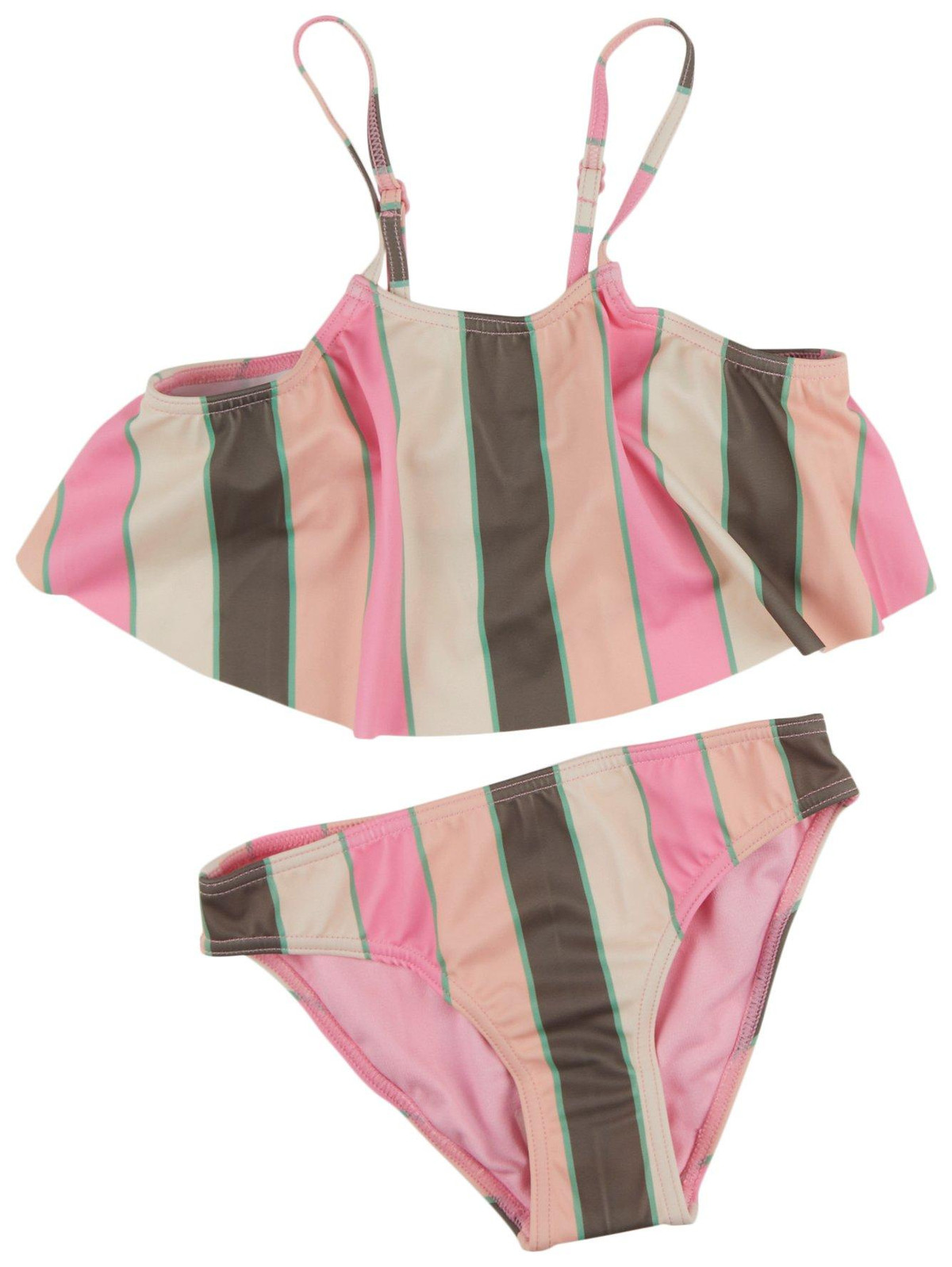 The Very Vista Flutter Swimsuit Set features allover iconic stripe print design. The swimwear is crafted from soft, recycled, resistant, and stretchable polyester blend fabric for a lightweight and comfortable feel.