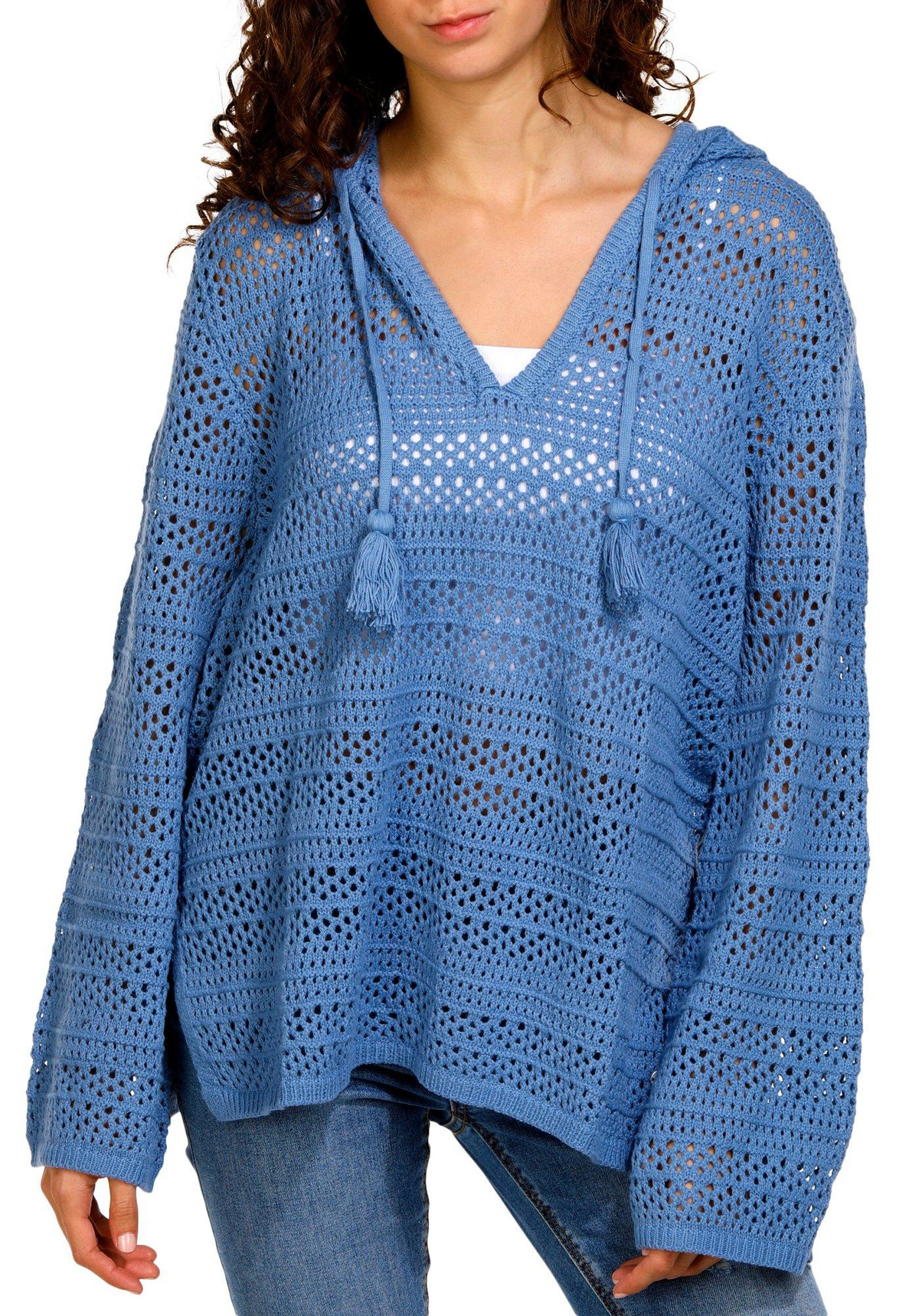 After a long beach day, relax by the bonfire in this poncho-style hoodie for juniors. The cozy pullover is crafted from midweight cotton-blend acrylic blend fabric for a relaxed fit you can snuggle in.