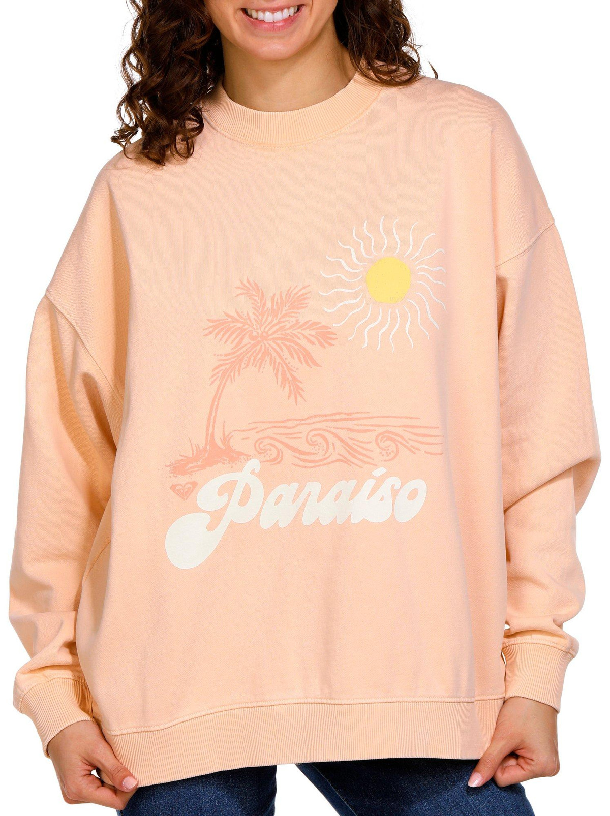 Introducing the Roxy Juniors Lineup Crew Neck Sweater, crafted from a blend of cotton, elastane, and polyester for a cozy and comfortable fit. This sweater features a soft fleece lining that keeps you warm, a classic crew neckline, and long sleeves for added comfort. The island-inspired graphic design adds a touch of tropical flair, making it perfect for casual outings or relaxing at home.