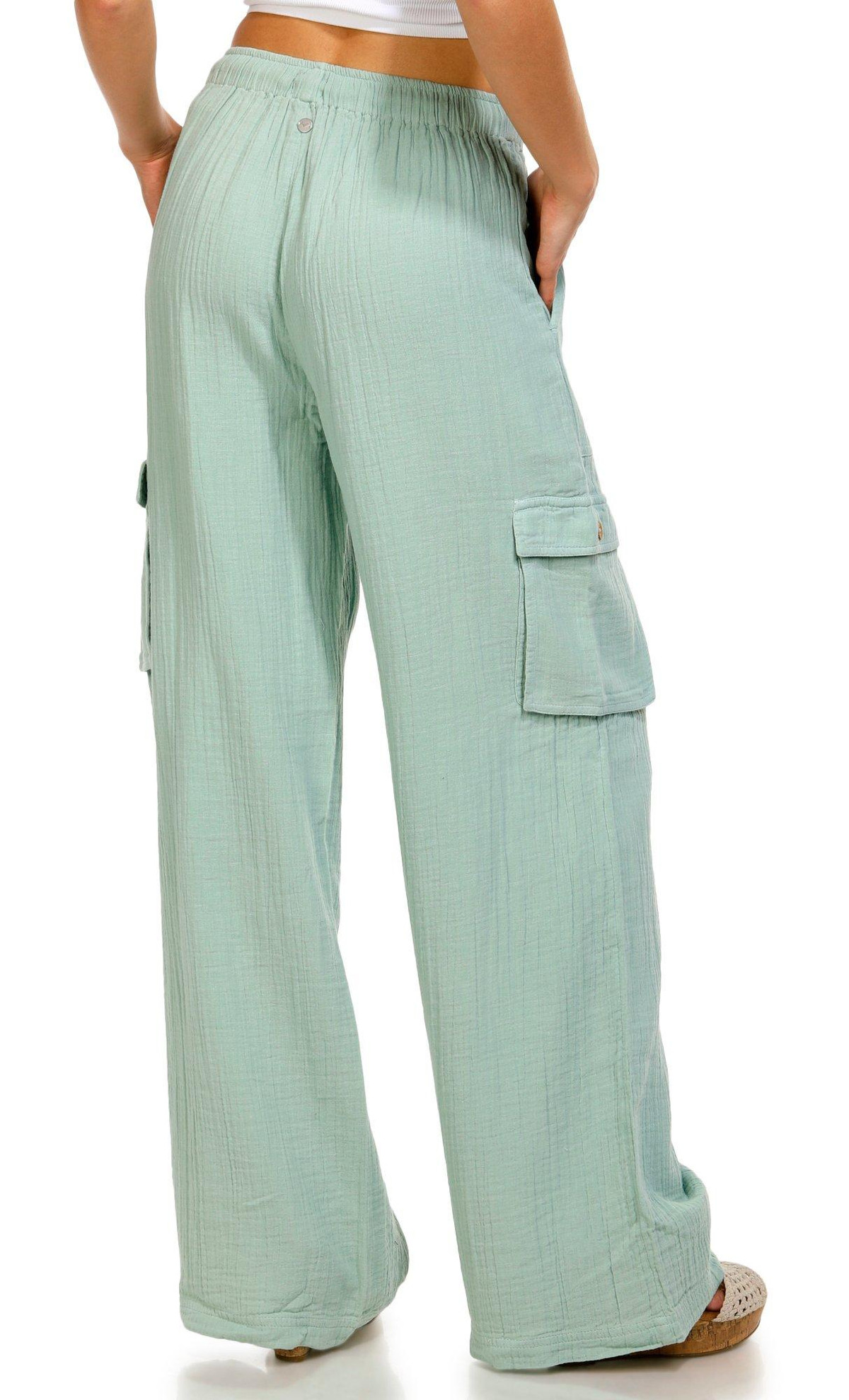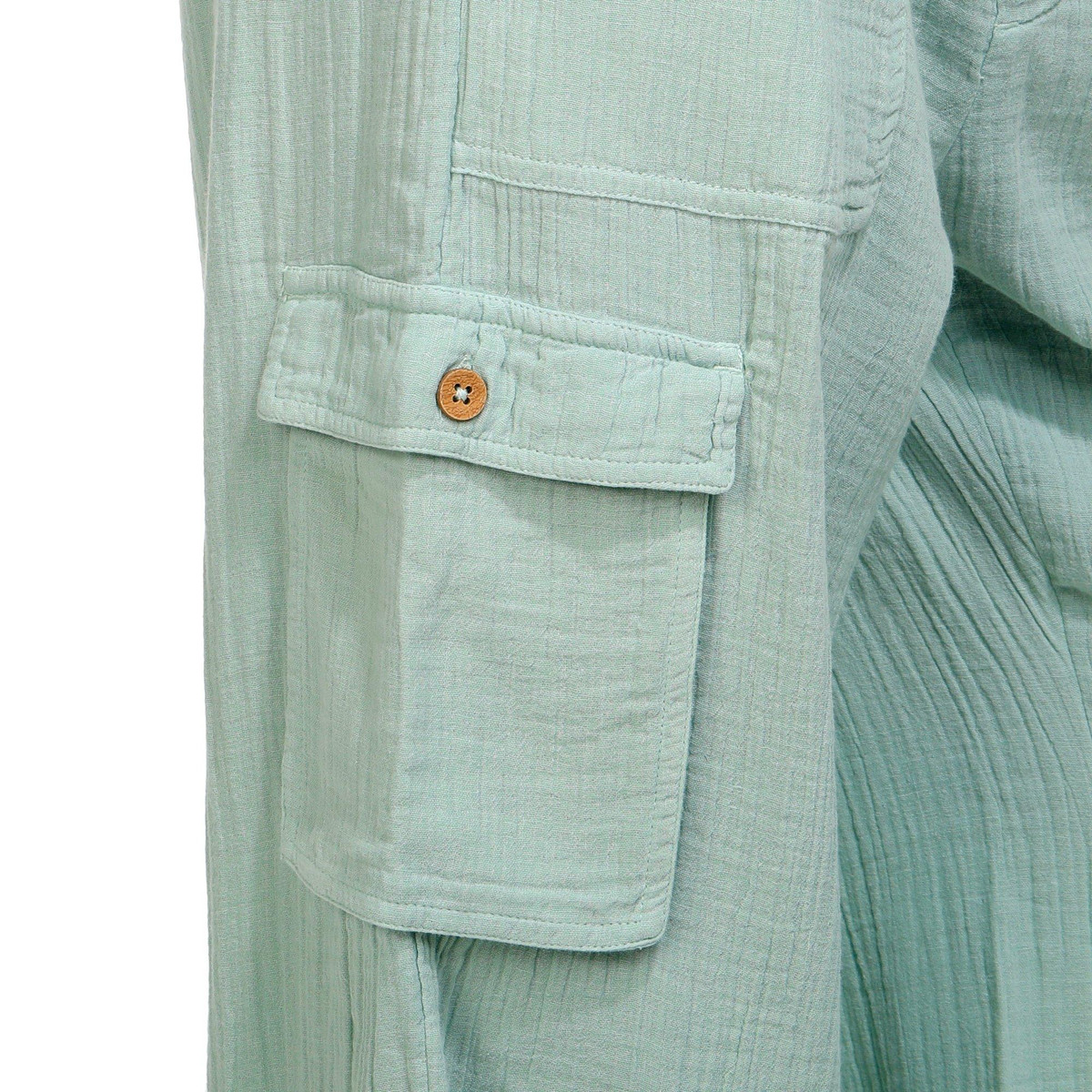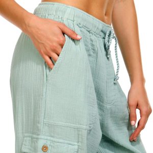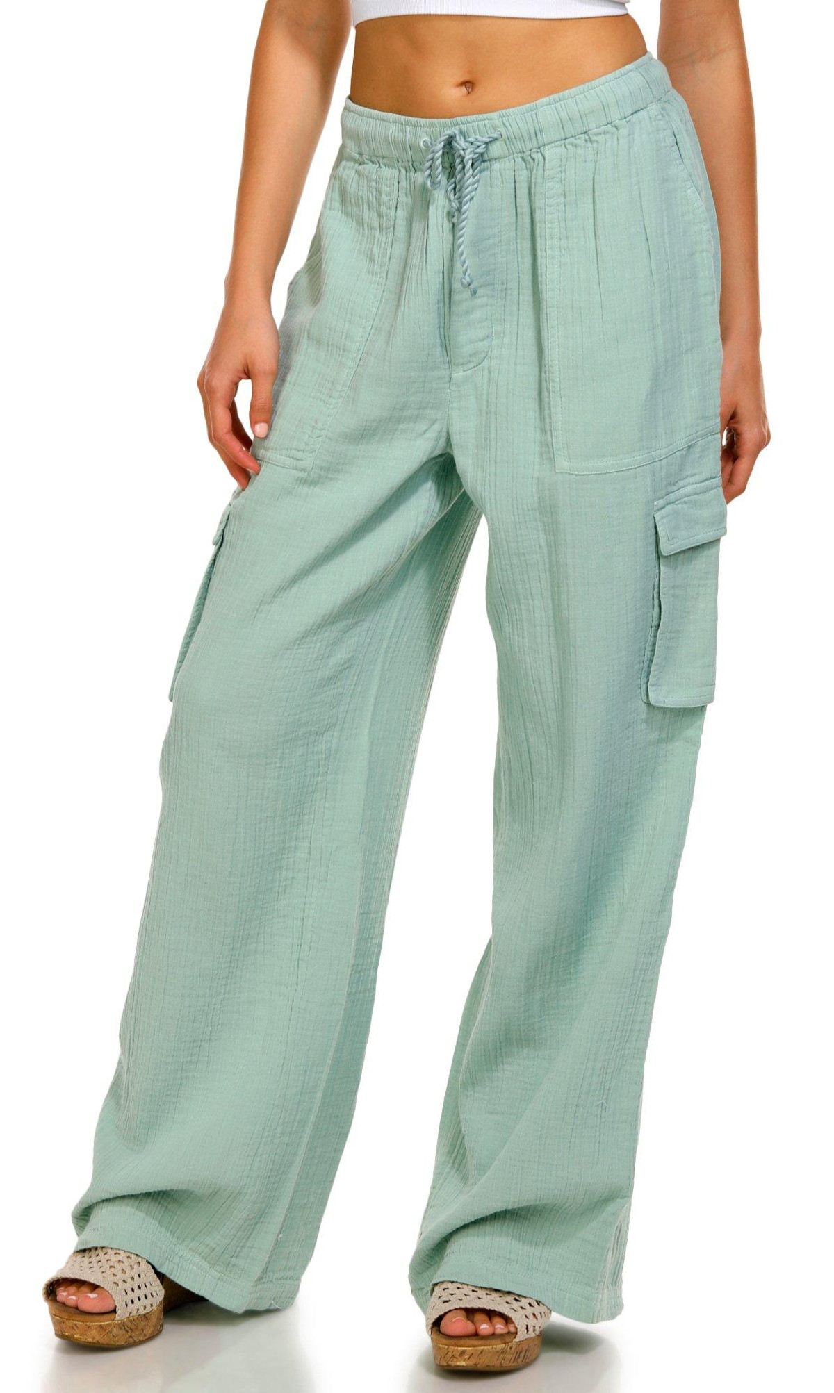 Utility meets laid-back vibes in ROXY’s Precious High-Waist Cargo Pants. Crafted of double-layer textured cotton gauze fabric that’s as soft as a cloud, these beach pants boast a relaxed straight-leg fit, faux fly, a drawcord waist, utility trims, and side cargo pockets for a touch of adventure. Fabrication 100% cotton.