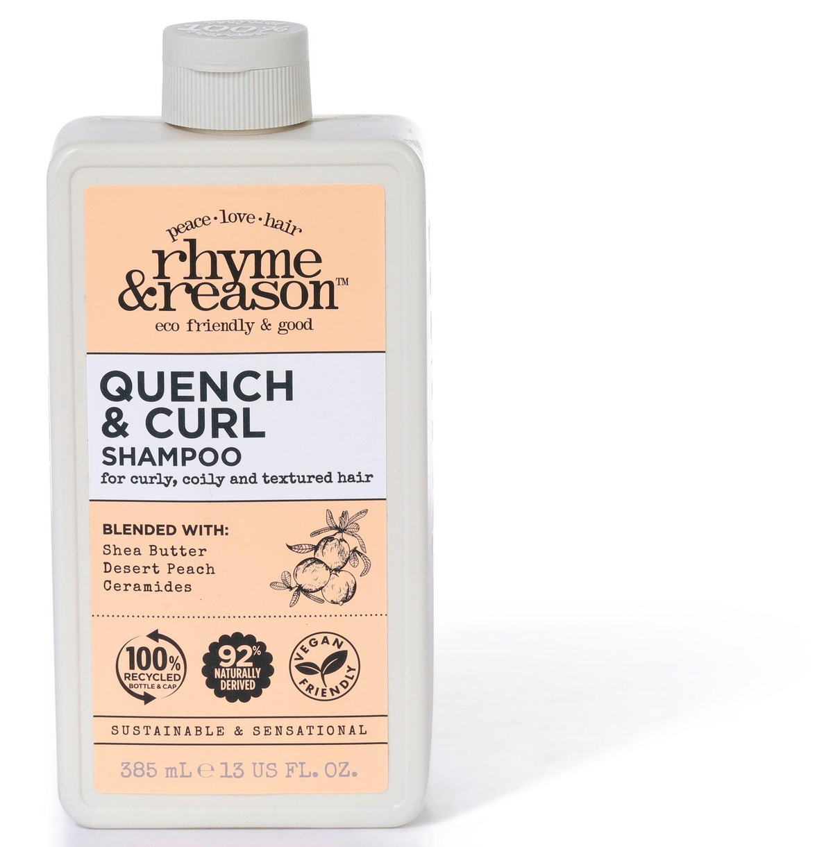Level up your curl care with Quench and Curl Shampoo designed for curly and coily textures. Packed with shea butter, desert peach, and ceramides, this vegan friendly formula hydrates, defines, and strengthens without harsh ingredients. It cleanses while locking in moisture for soft, bouncy curls that shine with health. Comes in a 13 fl oz. bottle