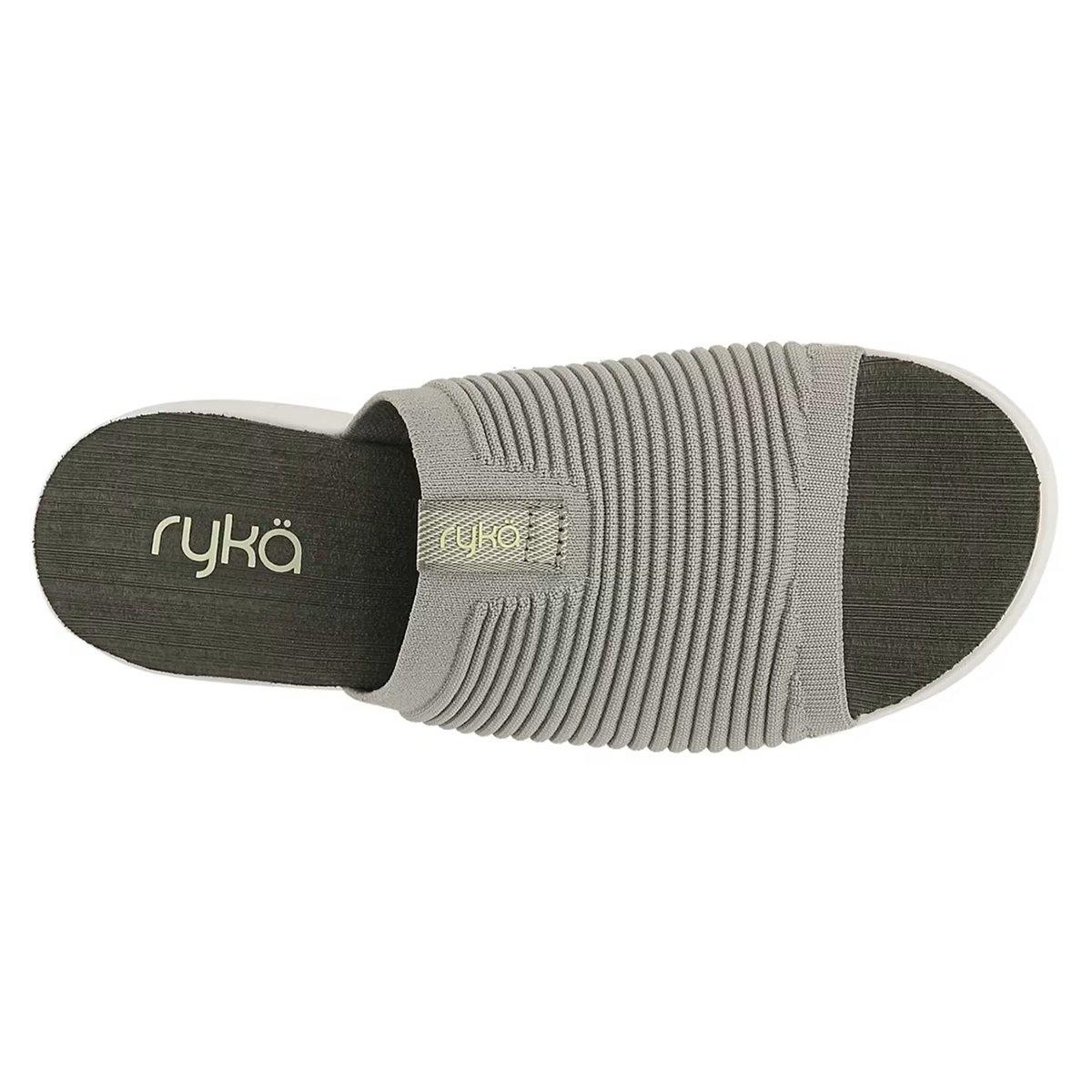 Slip into a breezy style with the Epic wedge sandals from Ryka. This pair takes inspiration from a classic slide style, featuring a classic thick ribbed band strap and a slight wedge heel.
