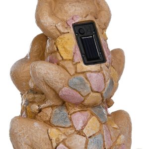 Brighten up your garden with the 14 Solar Piggy Back Frogs Figurine featuring multi-color accents on the frogs chests. This whimsical piece showcases two playful frogs stacked together, adding charm and personality to any outdoor space. Crafted from durable resin and equipped with a solar panel, it captures sunlight by day and glows at night. Standing 14 inches tall, its a magical addition for patios, flower beds, or as a cheerful gift for garden lovers.