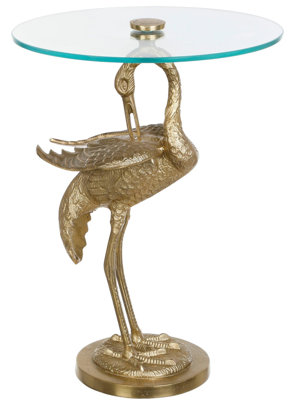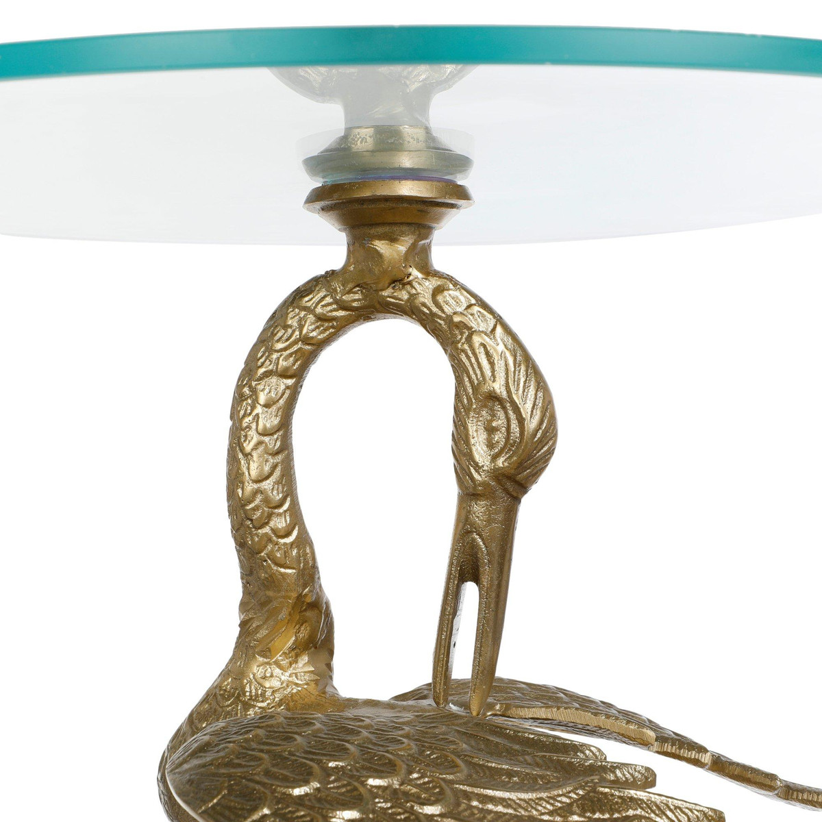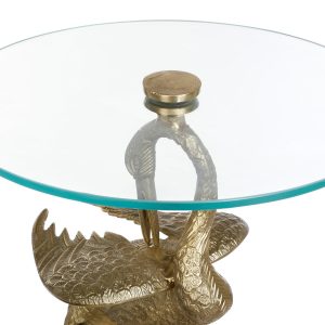 Introducing the 20 in Crane Side Table, a striking addition to your home decor. This unique table features a metal base shaped like a crane, adding a touch of elegance and whimsy to any room. The glass top provides a sleek and modern surface, perfect for displaying items or holding beverages. Measuring 20 inches, this side table combines artistic design with functionality, making it an eye-catching centerpiece for your living space.