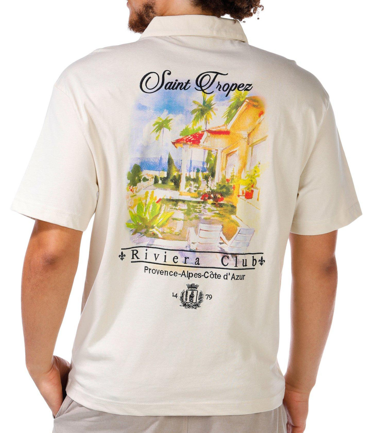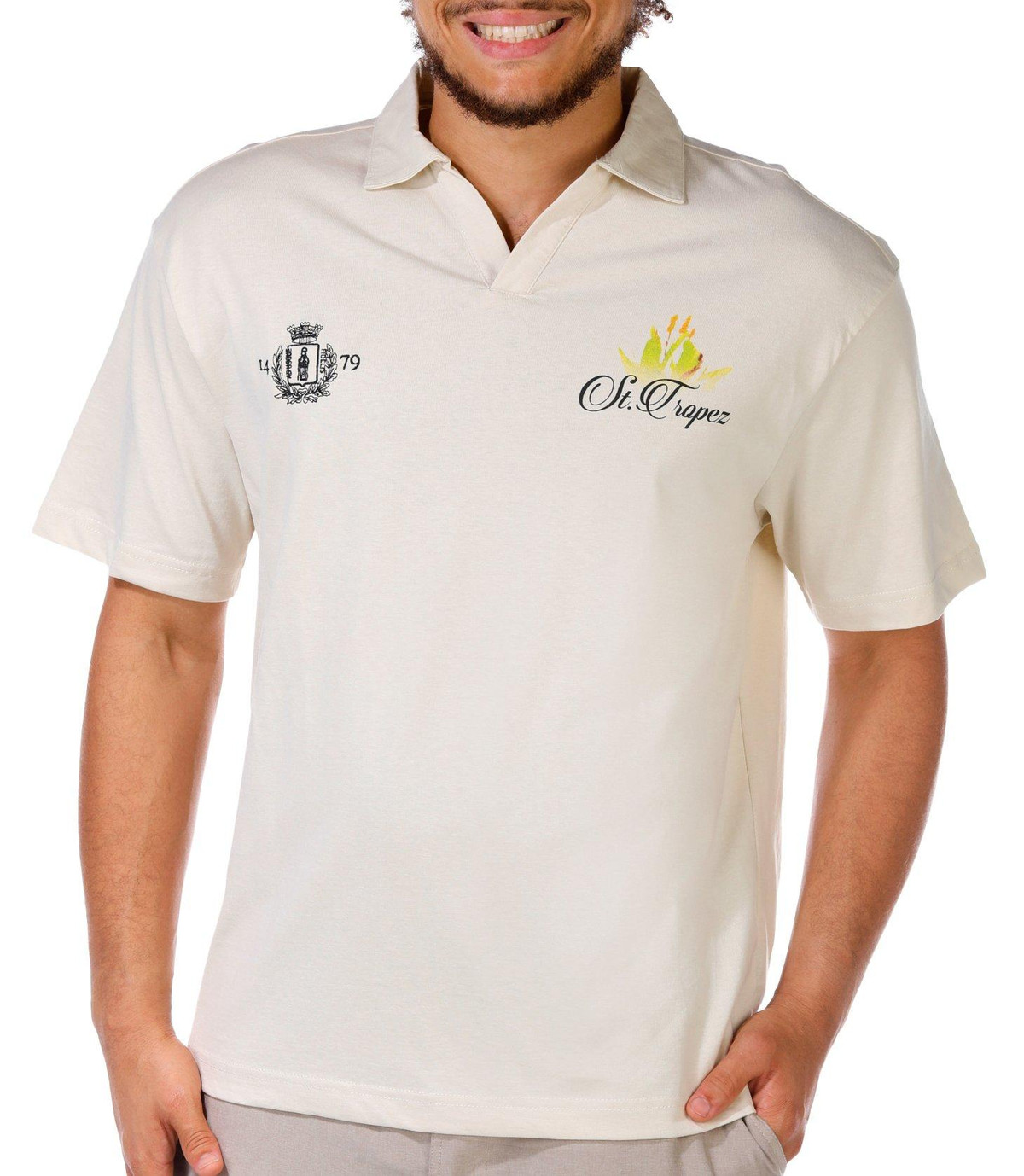 Channel coastal vibes with the Men’s Graphic Polo Shirt. Featuring short sleeves and a classic polo neckline, this tee is styled with sleek St. Tropez script on the chest corner and a bold graphic design on the back for a refined yet relaxed look. Fabrication 100% cotton