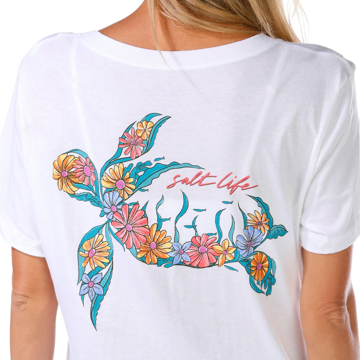 Our Juniors Floral Sea Turtle Graphic Tee blends nature and style with a soft v-neckline and a detailed floral sea turtle graphic on the back. Finished with brand script, this tee offers a relaxed yet expressive look perfect for everyday wear. Fabrication 100% cotton