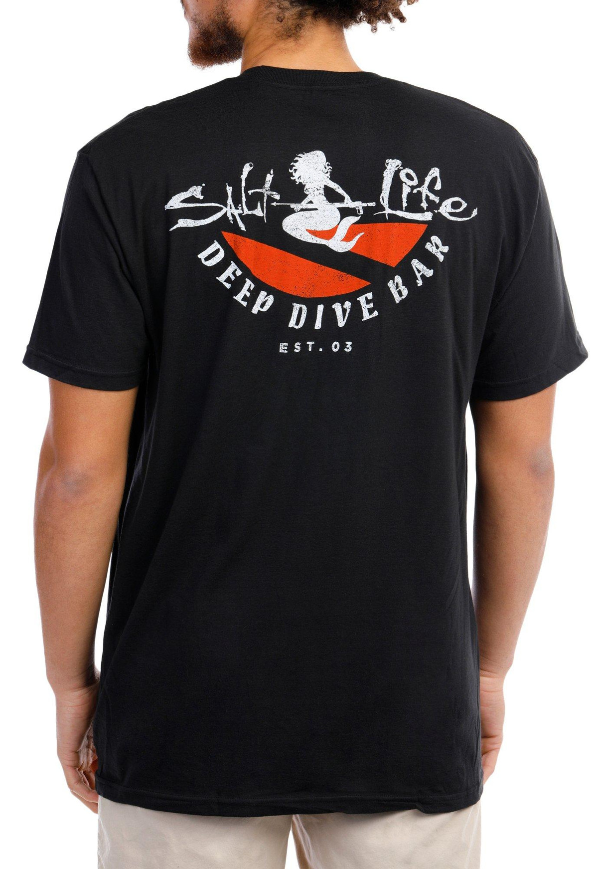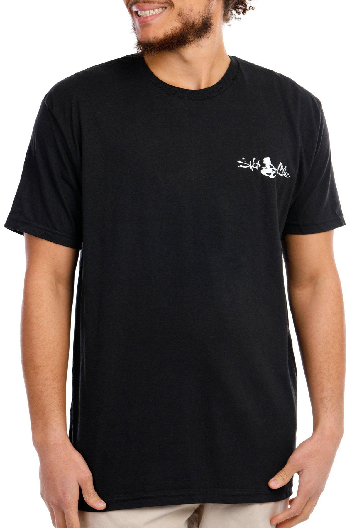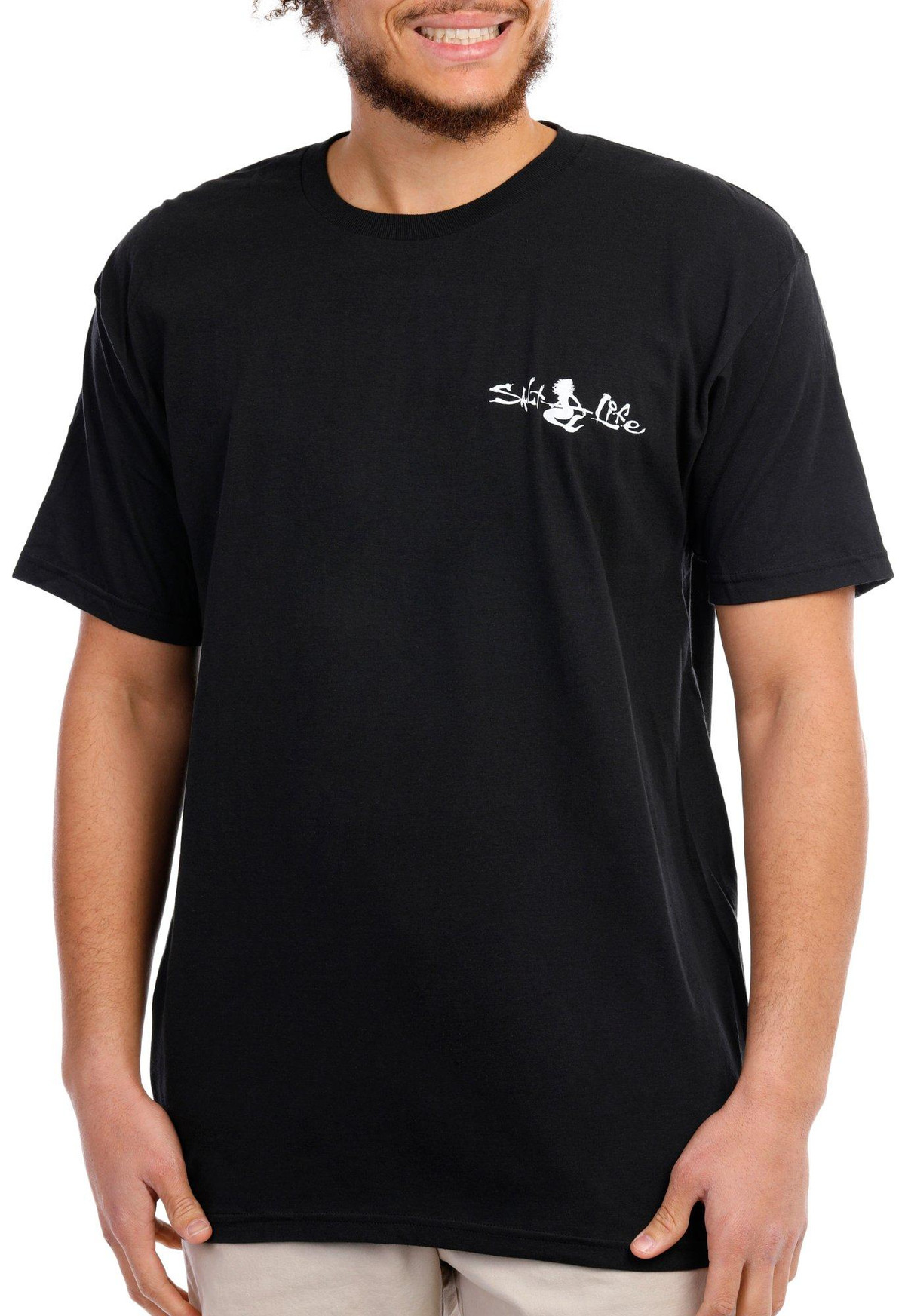 This short sleeve tee features a solid color design on soft lightweight 100% cotton jersey fabric, high-quality screen printed graphic on the back, brand name on the chest, a crew neckline, and a classic fit perfect for a casual wear. Fabrication preshrunk 100% cotton. Outseam approximately 32 inches.