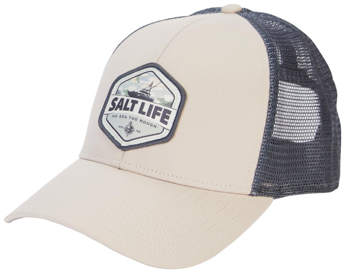 Embrace coastal living with this Mens Heavy Seas Baseball Cap. Featuring a woven Salt Life patch on the front and breathable mesh panels on the sides and back, it combines comfort with a laid-back nautical style. The curved brim and adjustable closure ensure a secure, personalized fit. Ideal for boating, beach days or everyday wear. Spot clean as needed.
