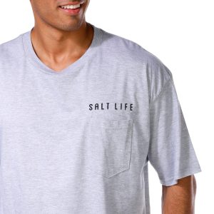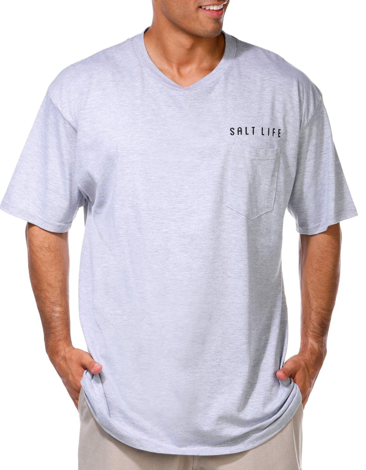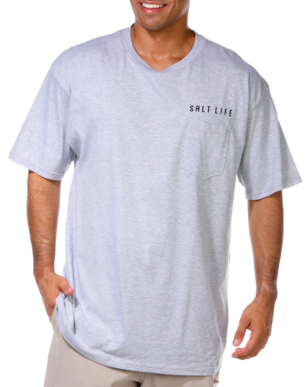 Salt Life designs apparel, footwear, and accessories with the ocean lover in mind. This short sleeve tee features a solid color design on lightweight breathable 100% cotton jersey fabric, screen printed graphic on the back, screen print logo on the chest, one chest pocket, a crew neckline, and a classic fit. Fabrication 100% cotton.