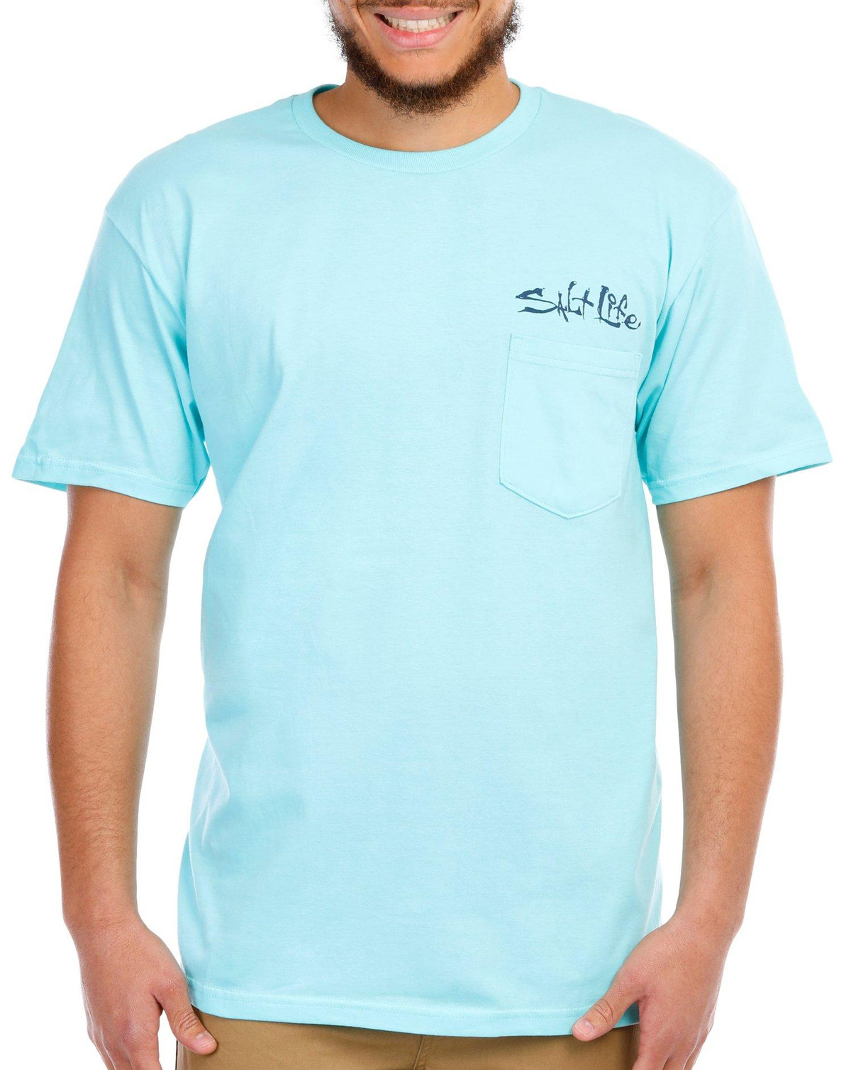 Salt Life designs apparel, footwear, and accessories with the ocean lover in mind. This short sleeve tee features a solid color design on lightweight breathable 100% cotton jersey fabric, screen printed graphic on the back, screen print logo on the chest, one chest pocket, a crew neckline, and a classic fit. Fabrication 100% cotton.