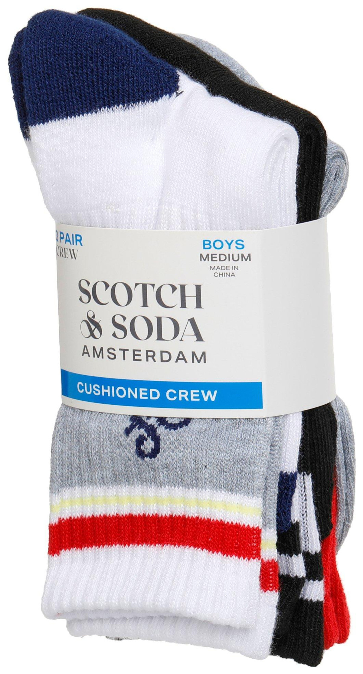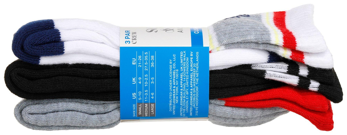 Keep your childs feet comfortable and stylish with this 3 Pack of Cushioned Crew Socks. Featuring assorted colors and stripe details, these socks add a fun touch to any outfit. The cushioned design provides extra comfort and support, making them perfect for everyday wear or active play. Crafted from high-quality materials, these socks ensure durability and a snug fit.