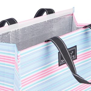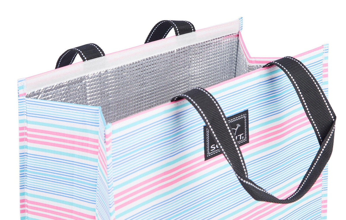 The SCOUT Pool McCartney Insulated Market Tote will keep food and drink items hot or cold. The interior is insulated with a thermal liner. The tote also has a velcro closure, exterior slip pocket, and it folds flat for easy storage. Measures 15.5 in x 8 in x 14.5 in.