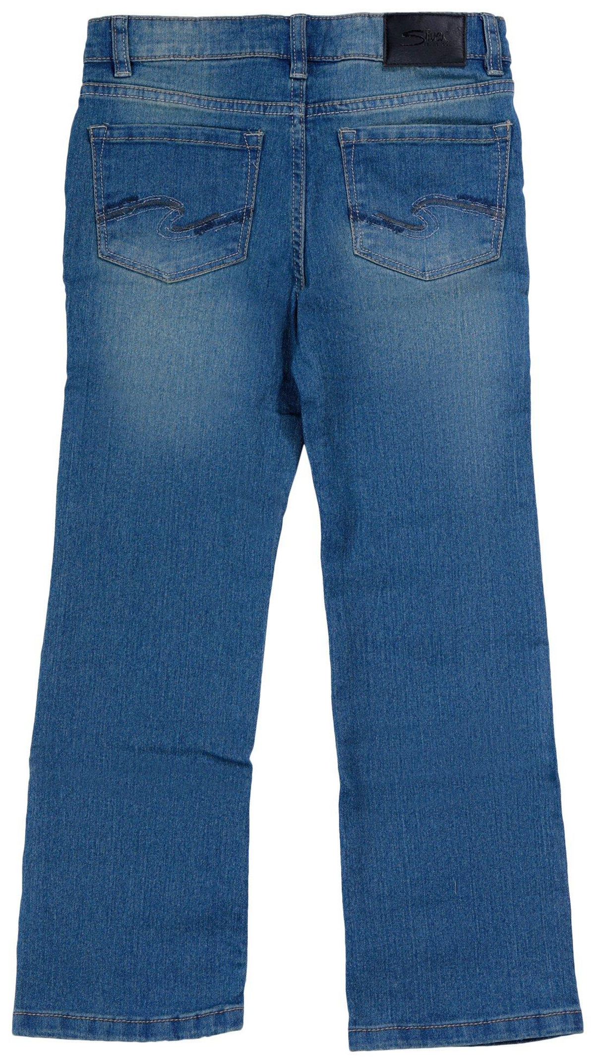 Wear a new comfortable and stylish pair of jeans with the Little Boys’ Bootcut Jeans. These bootcut jeans are both maneuverable and breathable with stretch denim fabric and with adjustable elastic inside. Featuring five pockets for storage, your boy will never want another pair of jeans again. The full-length bootcut fit offers a relaxed feel to wearing these jeans that your boy will enjoy all day long. Plus, the detailed back pocket embroidery offers a unique style to these bootcut jeans.