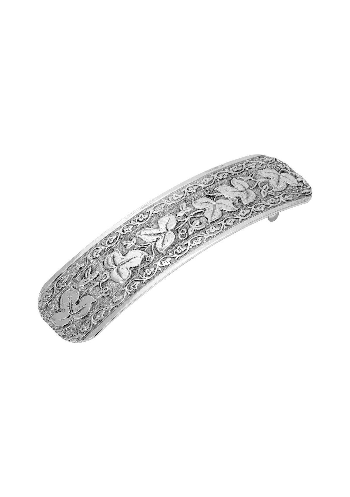 Elevate your look with this vintage-inspired hair barrette in a chic silver tone. Featuring intricate, textured floral detail, it adds a stylish touch to any hairstyle. Perfect for everyday wear or special occasions, this elegant accessory is designed to inspire your outfit with timeless charm. Length 3.7 in., width 25 mm.