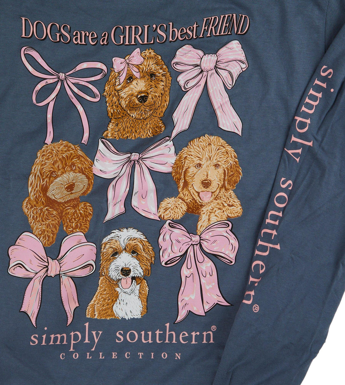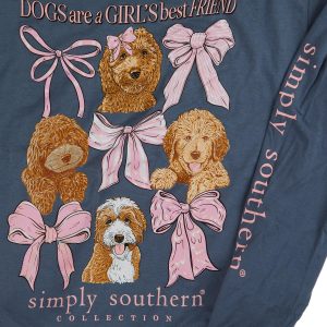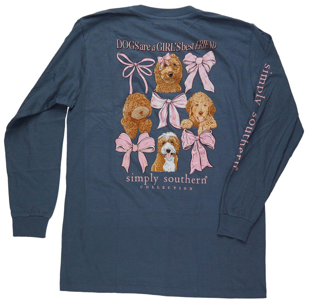 Introducing the Big Girls Dogs & Bows Long Sleeve Top, made from 100% cotton for a soft and cozy feel. This charming top features a delightful dog and bow graphic screen print on the back, adding a playful touch. The brand script on the chest completes the look, making it perfect for casual outings or special occasions. Elevate your wardrobe with this adorable and stylish long sleeve top!
