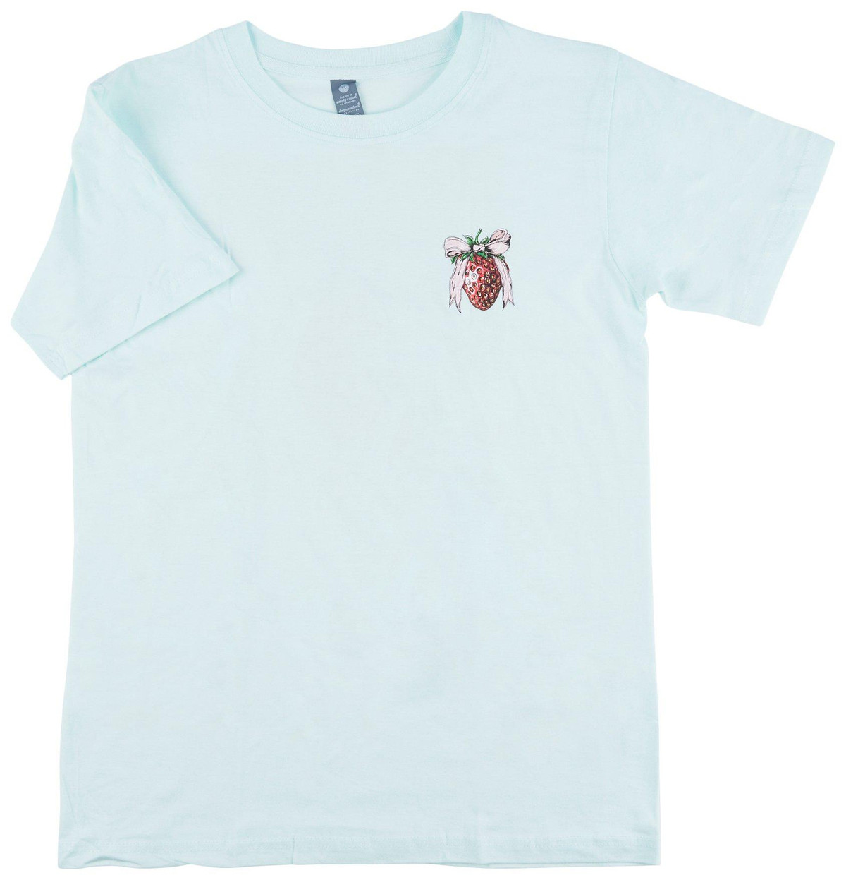 The Strawberry Girl’s Tee is a delightful addition to any casual collection. Made from 100% cotton, this tee features Big Strawberry Screen print with a Bow and with the uplifting Feeling Berry Good quote on the back. The crew neckline and short sleeves ensure comfort and ease, making it perfect for relaxed days and beach outings. Embrace the positive vibes and laid-back style with this fun and cozy tee.