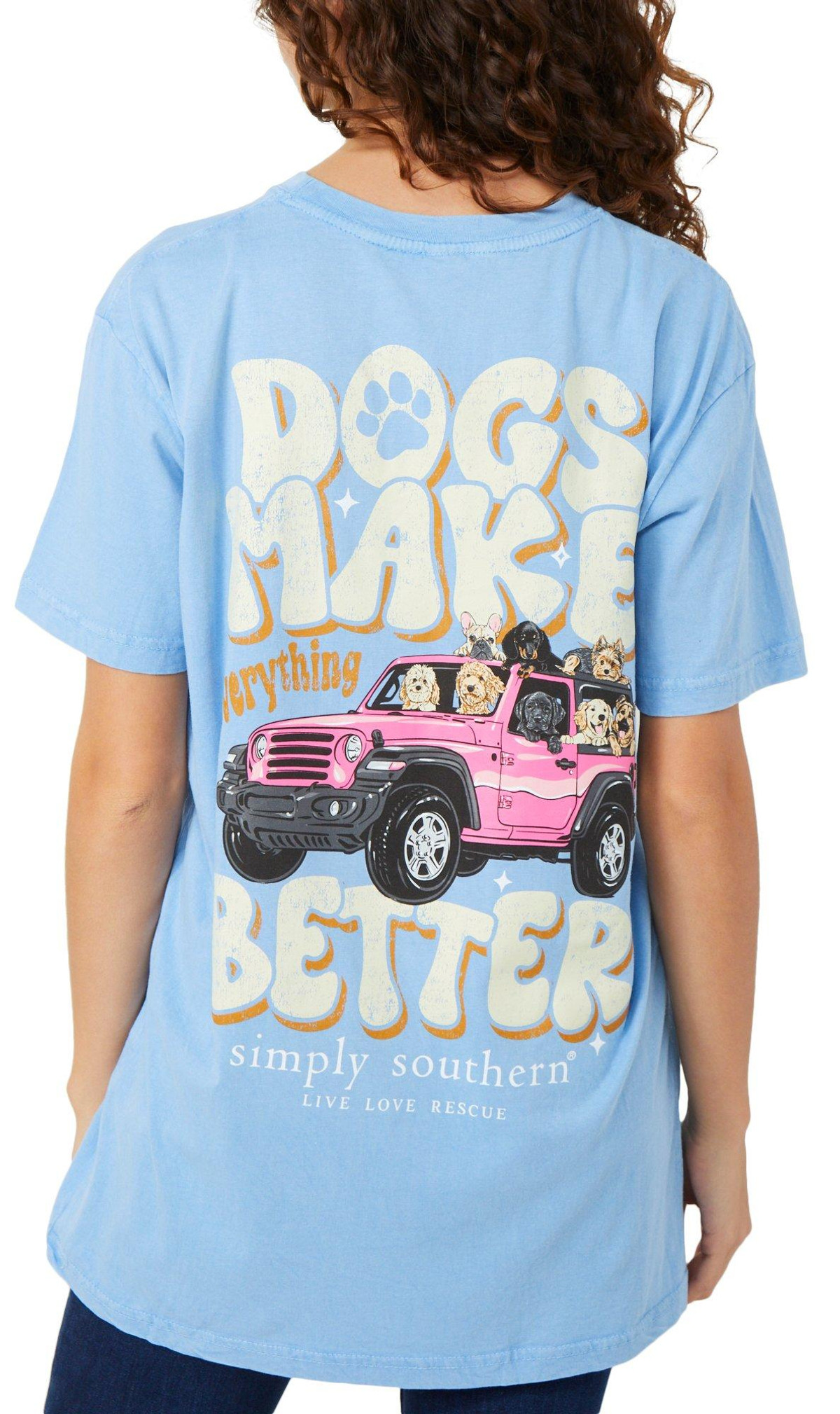 Show your love for pups in the Juniors Dogs Make Everything Better Tee. With short sleeves, a comfy crew neckline, subtle brand script on the chest, and an adorable group of dogs graphic on the back, its a feel-good favorite for any dog lover. Fabrication 100% cotton