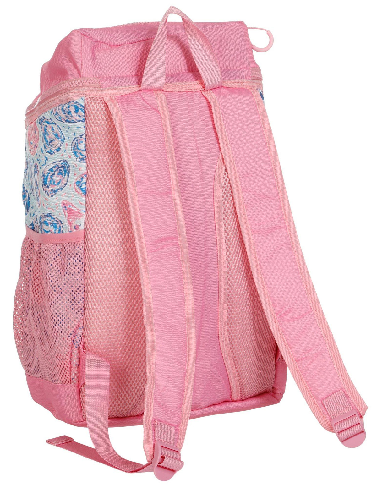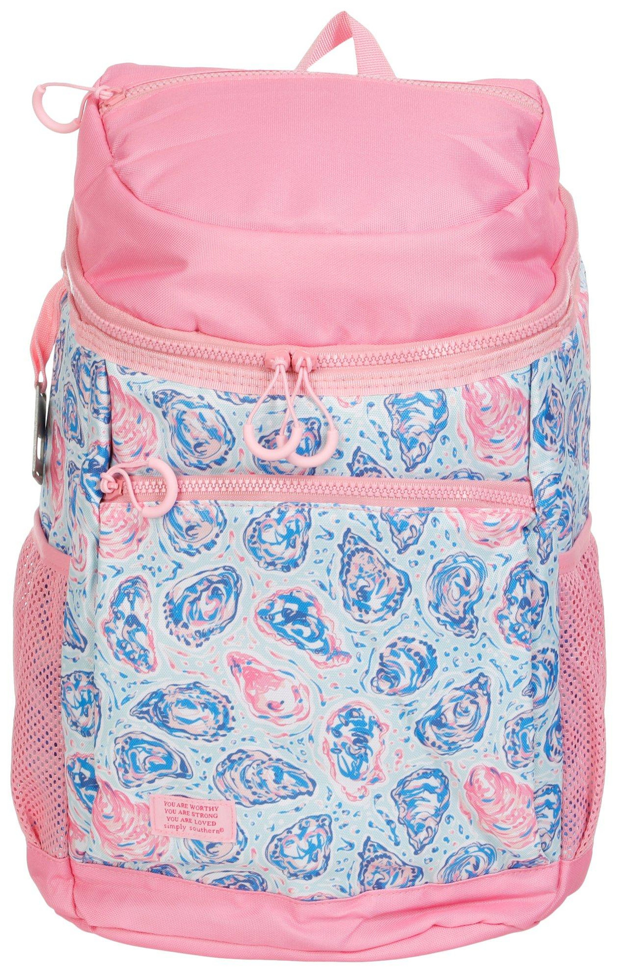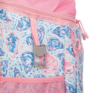 Easily transport and keep your drinks old with this stylish backpack cooler in Oyster Print. Perfect for a day at the beach, the pool, or sporting events. Made of 100% polyester, this backpack features adjustable straps, an insulated top zip compartments, two mesh side pockets, two exterior zip pockets and a bottle opener. Measures 12 in x 18 in.