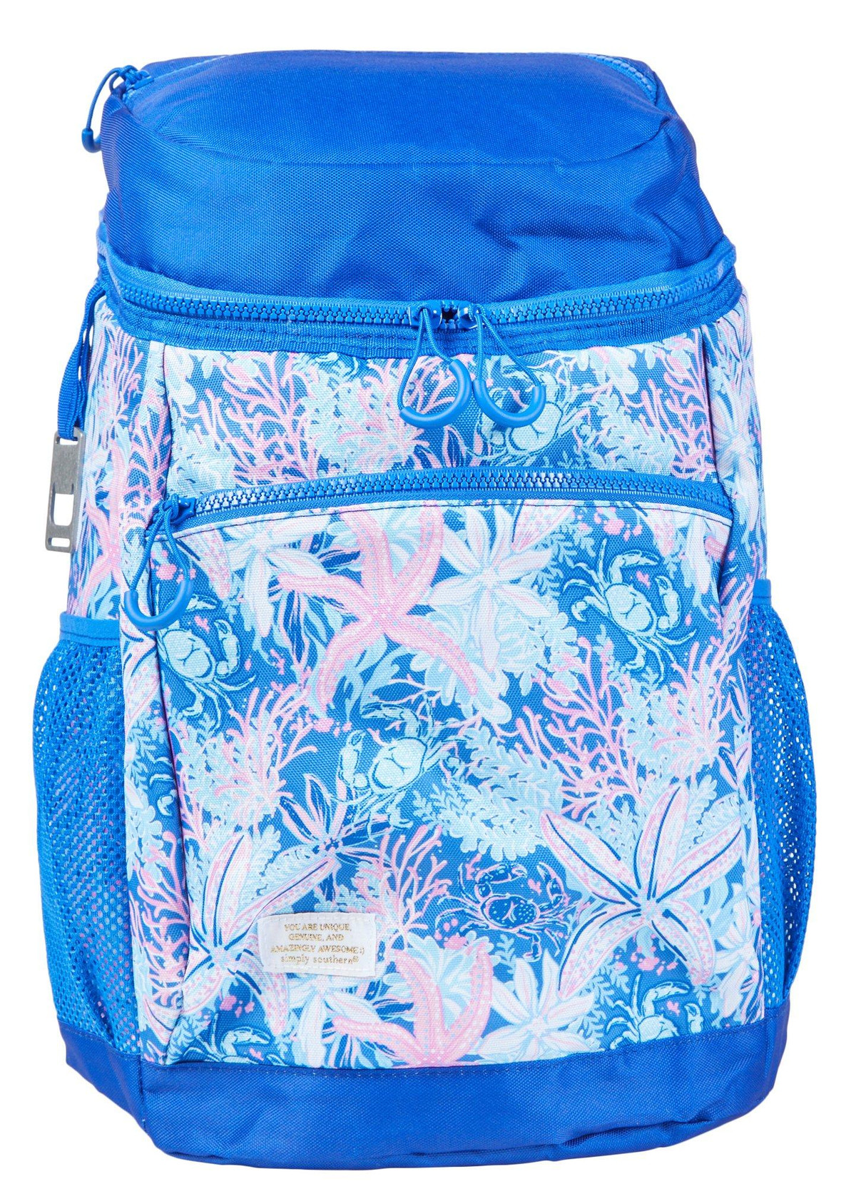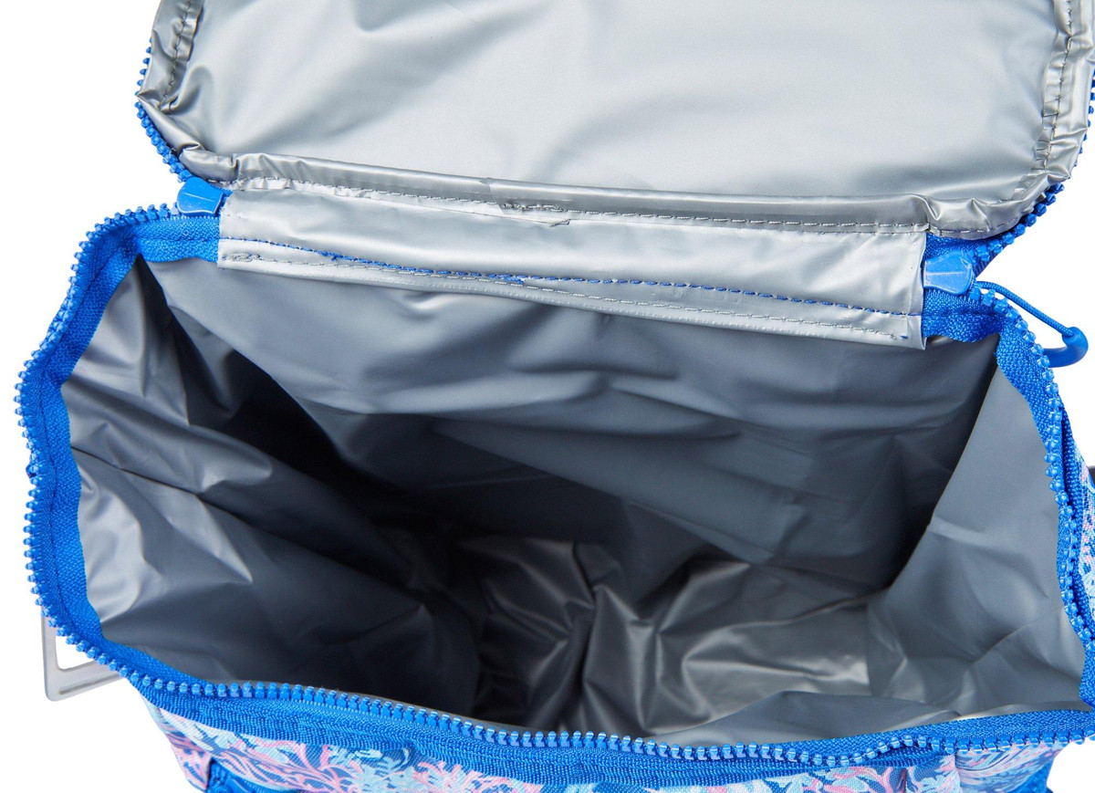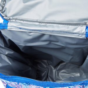 Easily transport and keep your drinks old with this stylish backpack cooler in Reef Print. Perfect for a day at the beach, the pool, or sporting events. Made of 100% polyester, this backpack features adjustable straps, an insulated top zip compartments, two mesh side pockets, two exterior zip pockets and a bottle opener. Measures 12 in x 18 in.