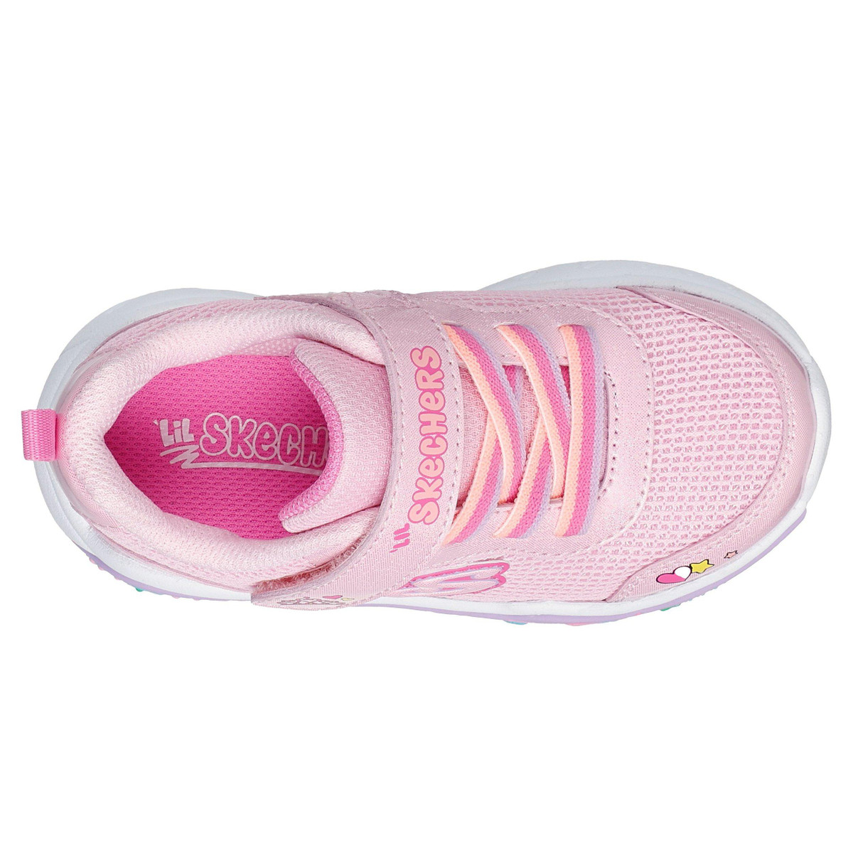 Your little one will be smiling all day long wearing Skechers Play Scene – Fun Squad. This adorable sneaker features a mesh upper with glittery overlays, stretch laces plus Adaptive Closure, and a well-cushioned midsole with playful, themed graphics.