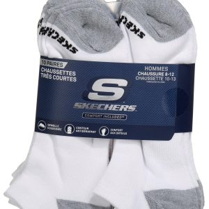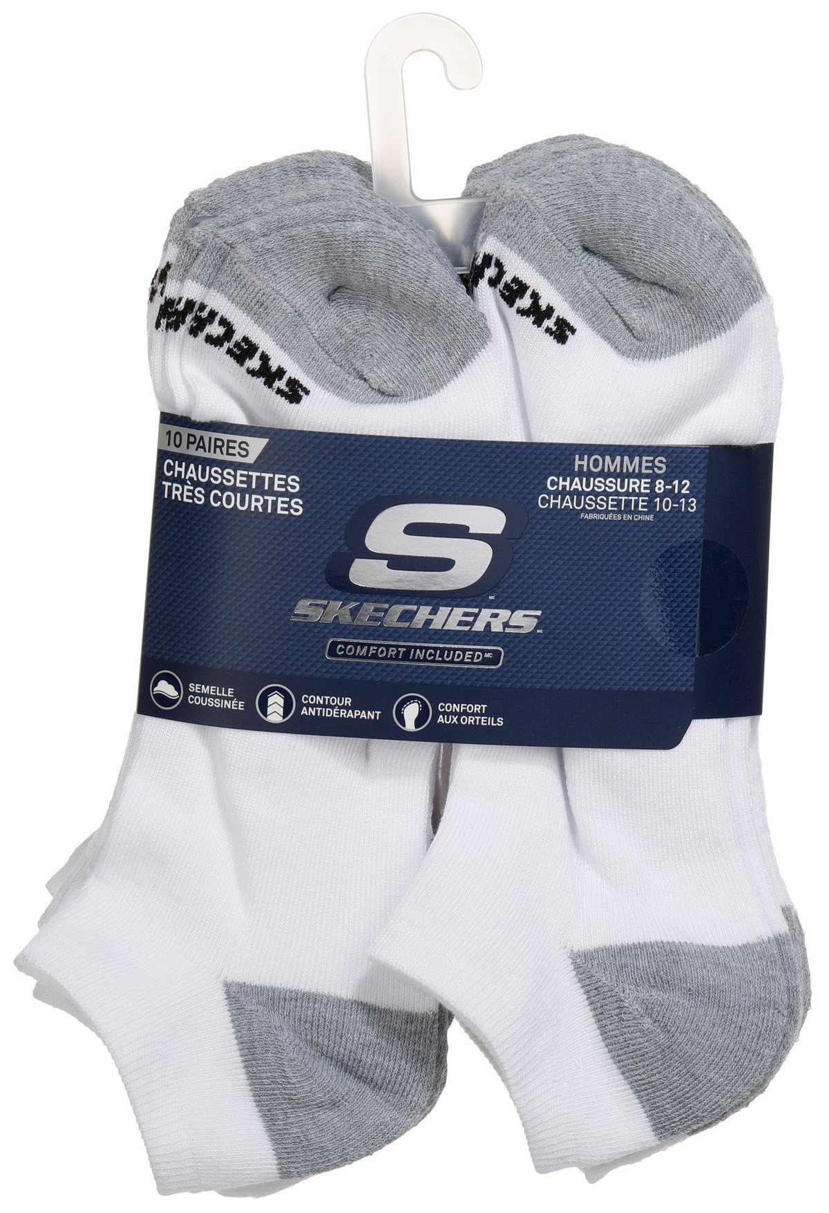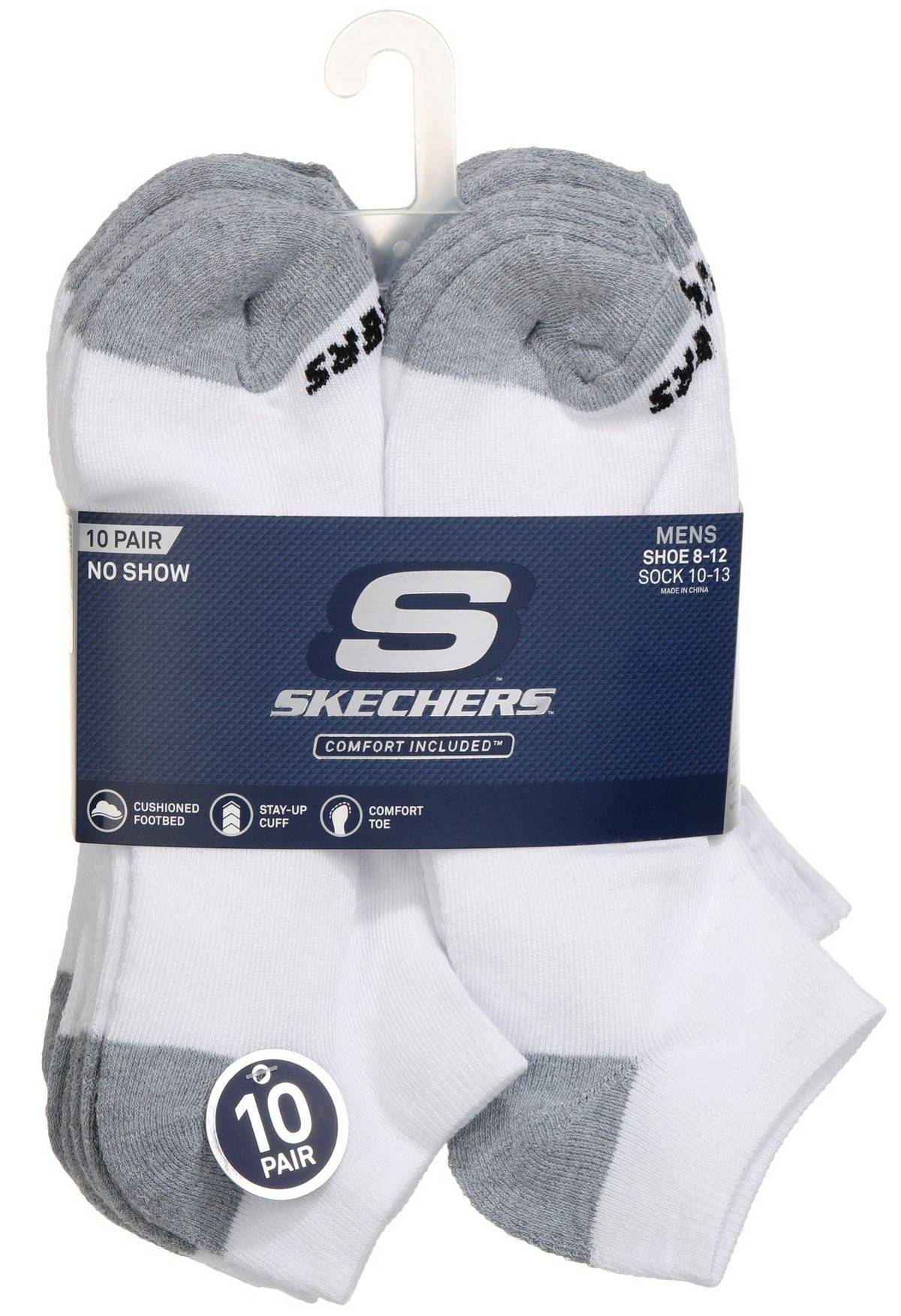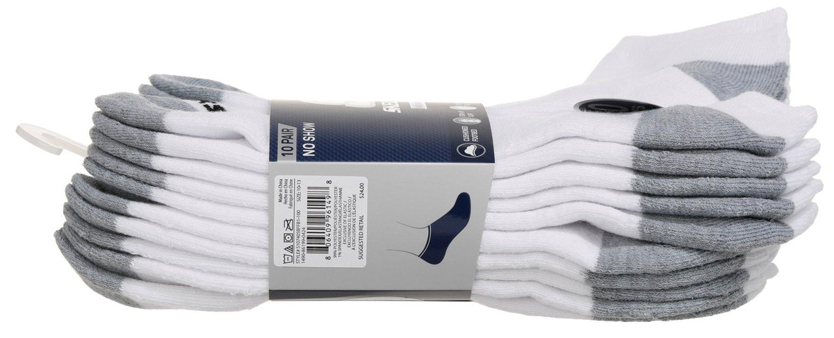 This 10-pack of no-show socks delivers everyday comfort with a low-profile fit. Featuring gray accents at the toe, heel, and cuff, each pair is designed for a secure, cushioned feel and easy all-day wear. Sock sizes: 10-13. Material: 98% Polyester, 2% Spandex