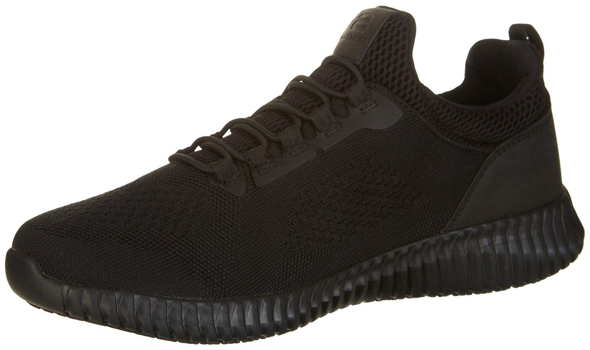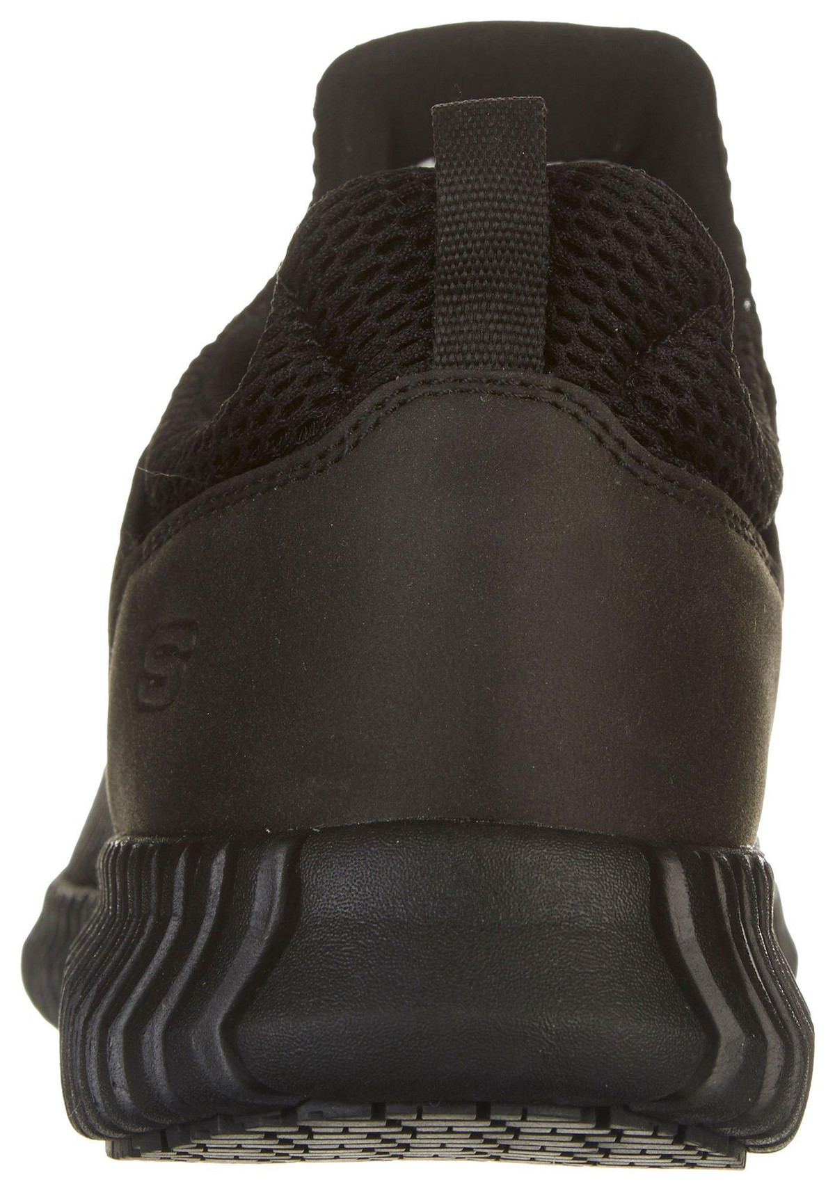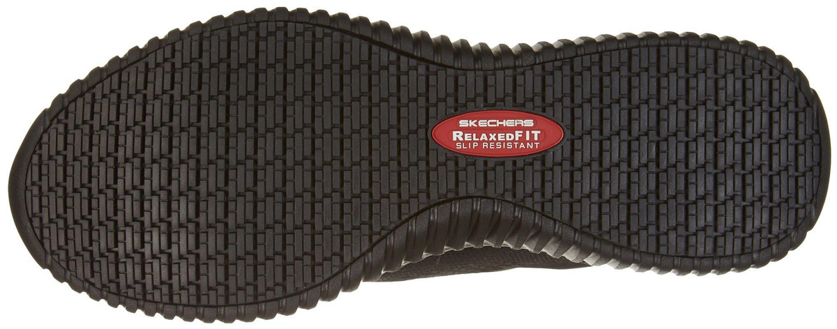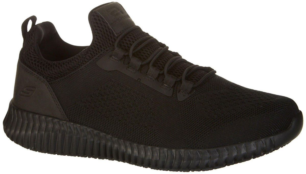 Cool sporty style and all day comfort combines in these Skechers Work Relaxed Fit: Cessnock work shoes. Smooth synthetic and mesh fabric uppers in a slip on sporty casual comfort work sneaker with slip resistant properties. Memory Foam insoles.