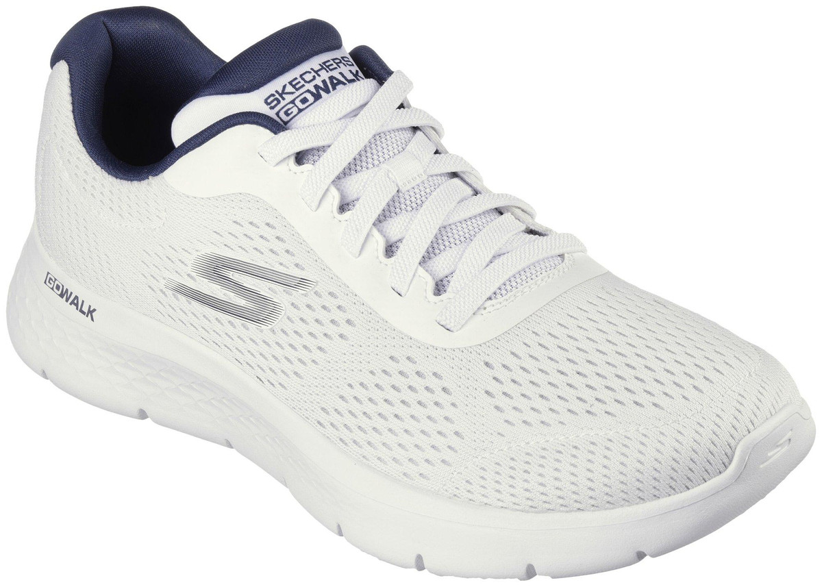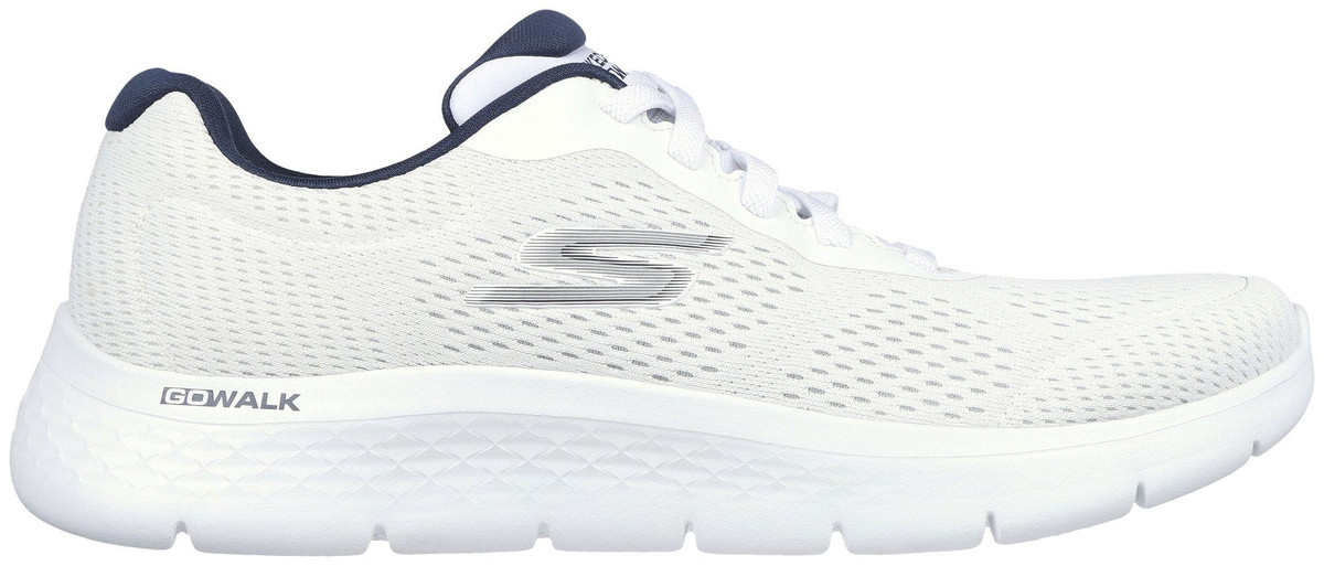 Meet your walking goals wearing Skechers GO WALK Flex – Remark. This athletic stretch lace style features an engineered mesh upper with a breathable Skechers Air-Cooled Goga Mat insole, lightweight ULTRA GO cushioning and a super flexible traction outsole.