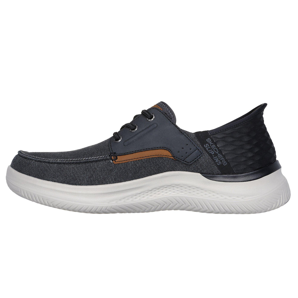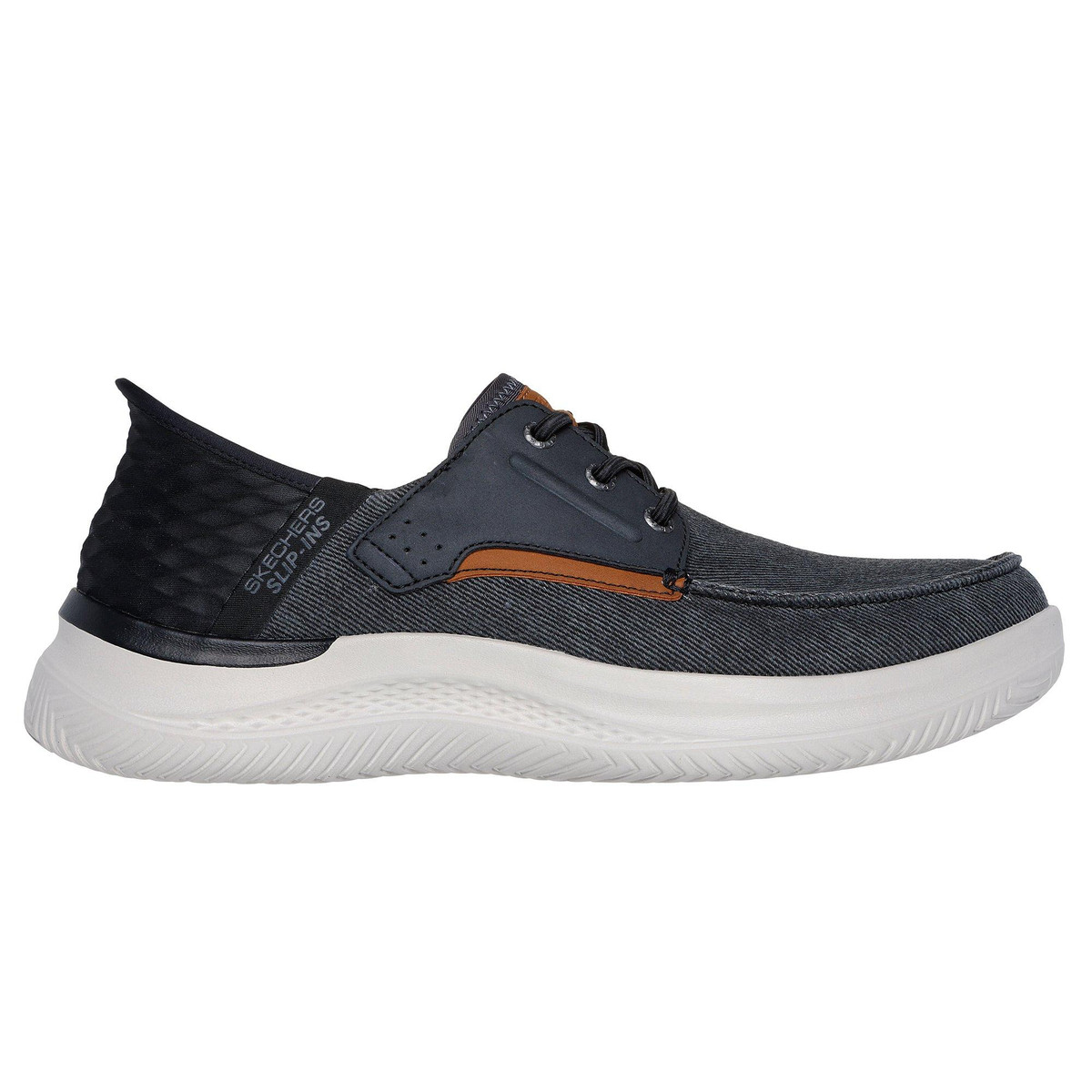 Level up your style without compromising on comfort thanks to these Hasting-Niko slip-on shoes by Skechers. They feature a practical slip-on design, decorative laces, and a cushioned footbed.