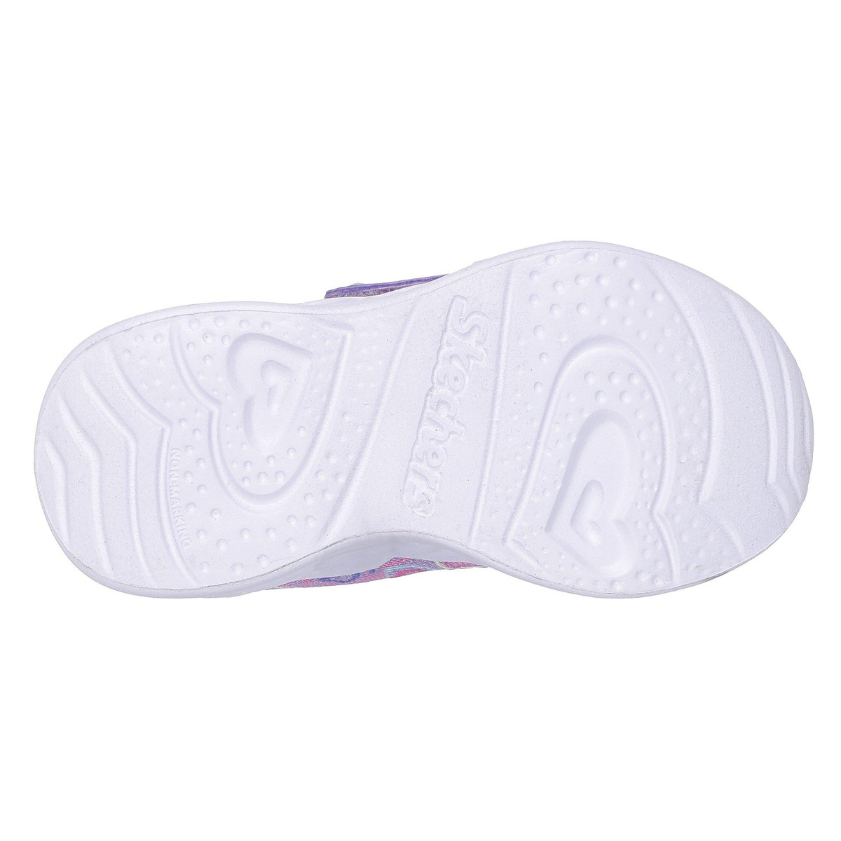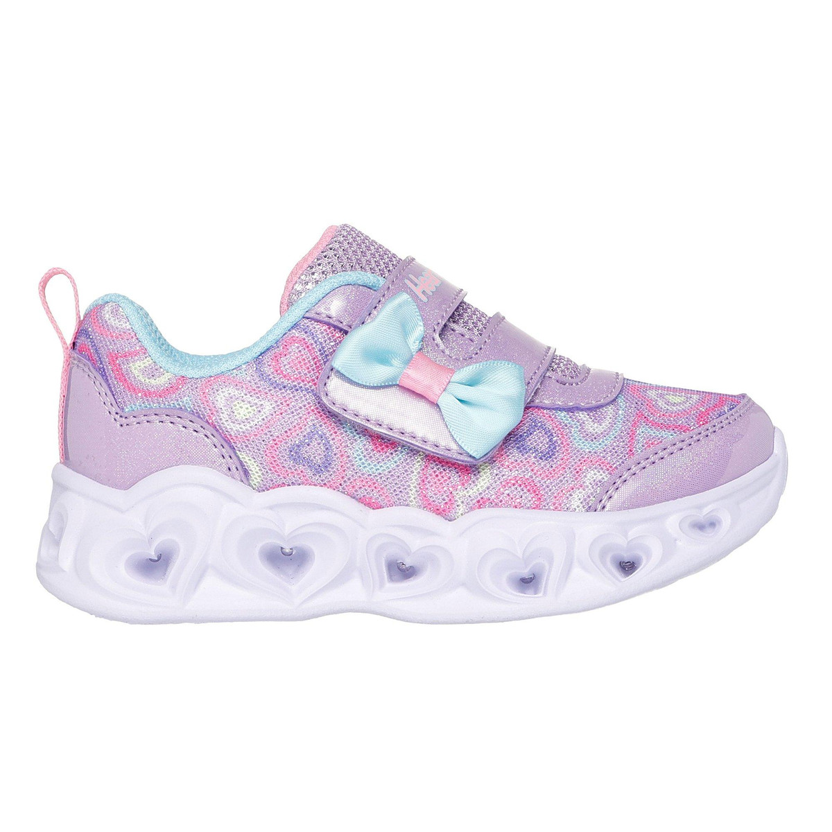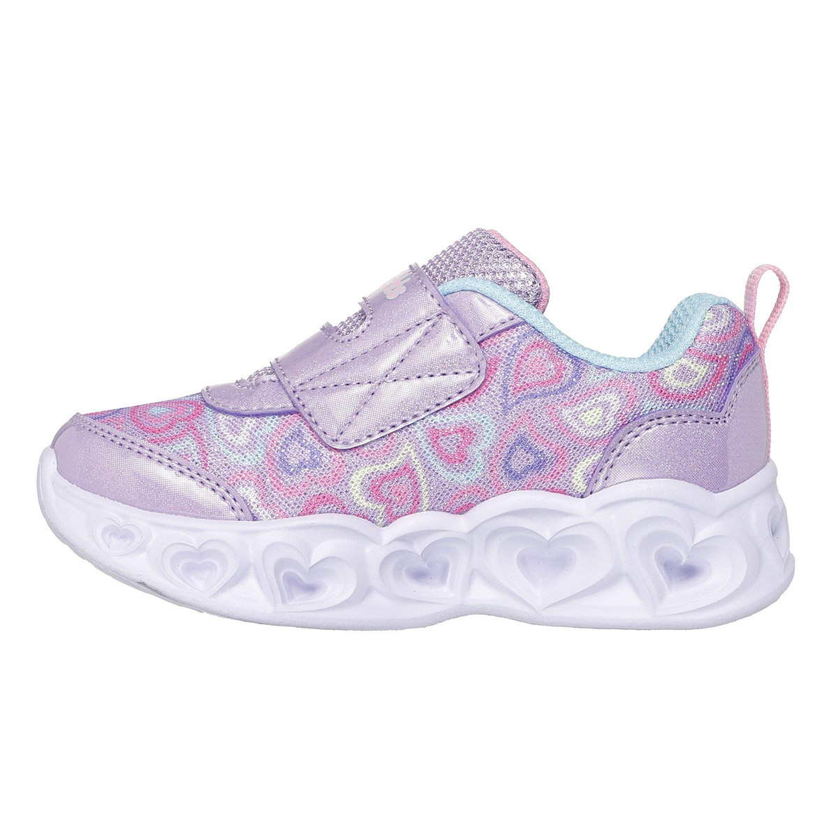The Skechers Toddler Girls Heart Lights-Boogie Athletic Shoes combine comfort and fun with vibrant heart-shaped lights on the soles. Featuring a soft, supportive design and an easy hook-and-loop strap, these shoes offer a secure fit and playful style perfect for active toddlers.