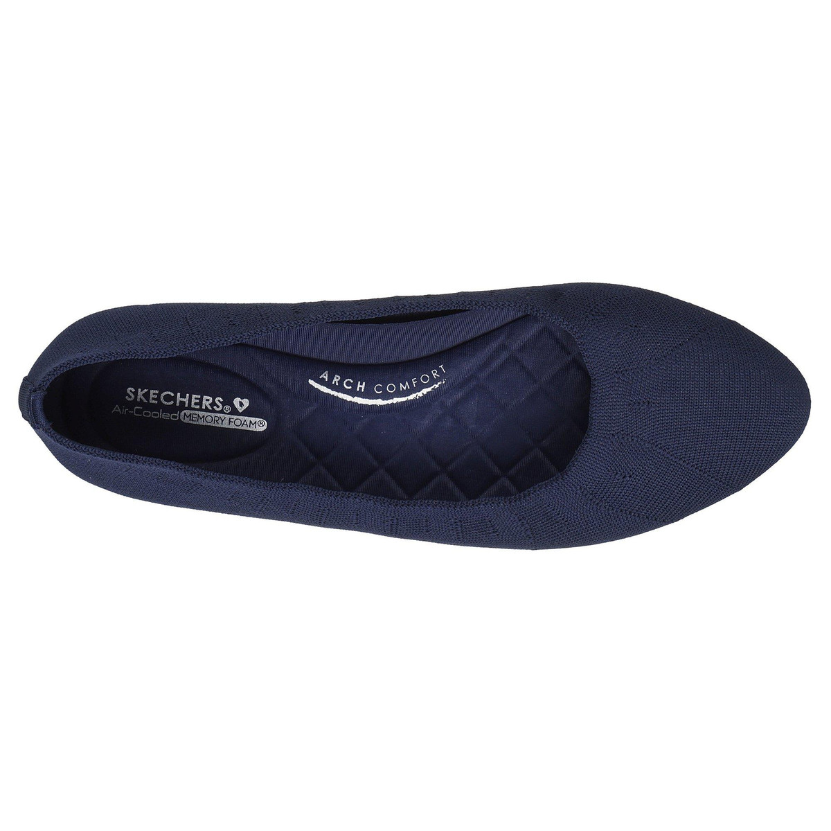Our Planet Matters. Versatile style is even easier to adore in Cleo flats from Skechers. This Stretch Fit® skimmer design features a woven knit fabric upper with scalloped edge trim and cushioned Air-Cooled Memory Foam® insole.