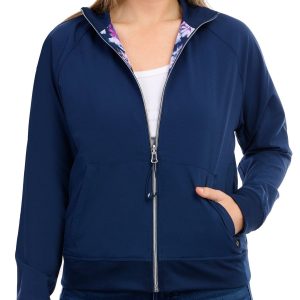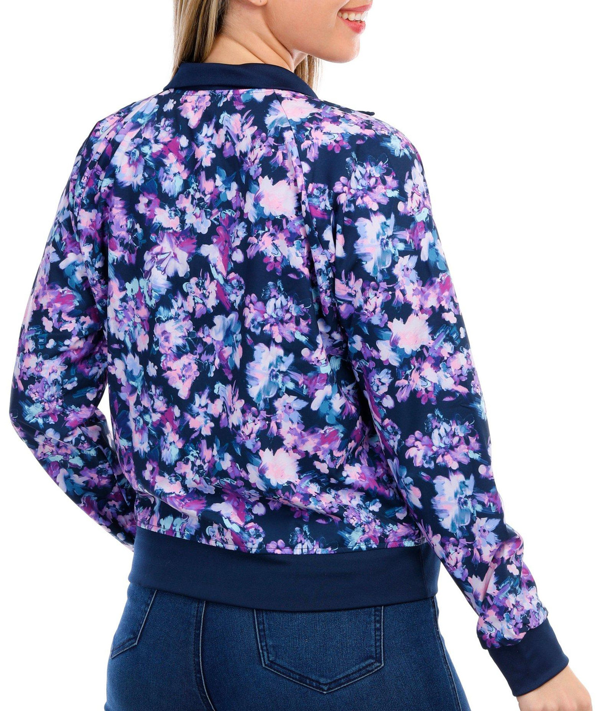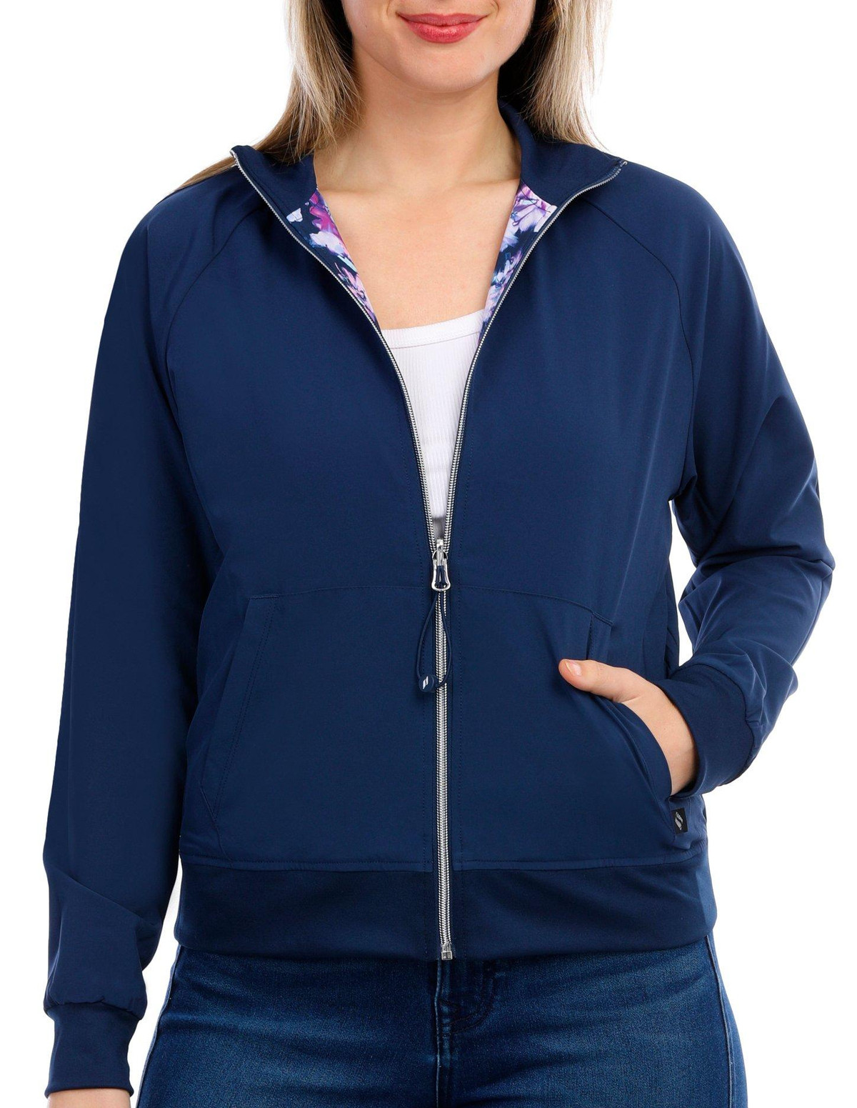 Elevate your style with this Long Sleeve Jacket, designed for both comfort and elegance. Featuring a sleek zip-up front, this jacket is perfect for layering in any season. The reversible floral and solid color design add a touch of sophistication while ensuring a flattering fit. With two front pockets, you can keep your essentials close at hand. Whether youre heading to the office or out for a casual stroll, this jacket is your go-to for effortless chic. Fabrication 88% polyester, 12% spandex.