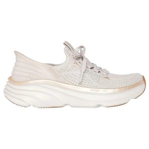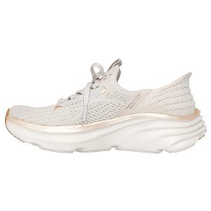 Get the lightest in well-cushioned sporty comfort wearing Skechers Hands Free Slip-ins Relaxed Fit: D’Lux Vapor – Evening Glow. Designed with our exclusive Heel Pillow, this fixed-lace vegan slip-on features a Stretch Fit engineered knit upper with metallic trim, Vapor Foam, midsole, and a cushioned Skechers Air-Cooled Memory Foam insole.